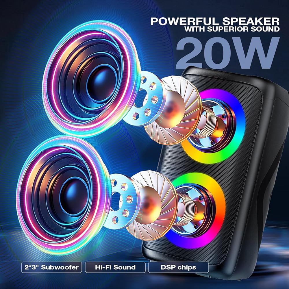Turn Any Space into a Real Karaoke Stage: Powered by 20W dual drivers and advanced audio tuning, this karaoke machine delivers rich bass, clear vocals, and balanced highs with minimal distortion—so every note sounds full and professional. Sing with confidence and enjoy a true stage-like experience at home or at parties