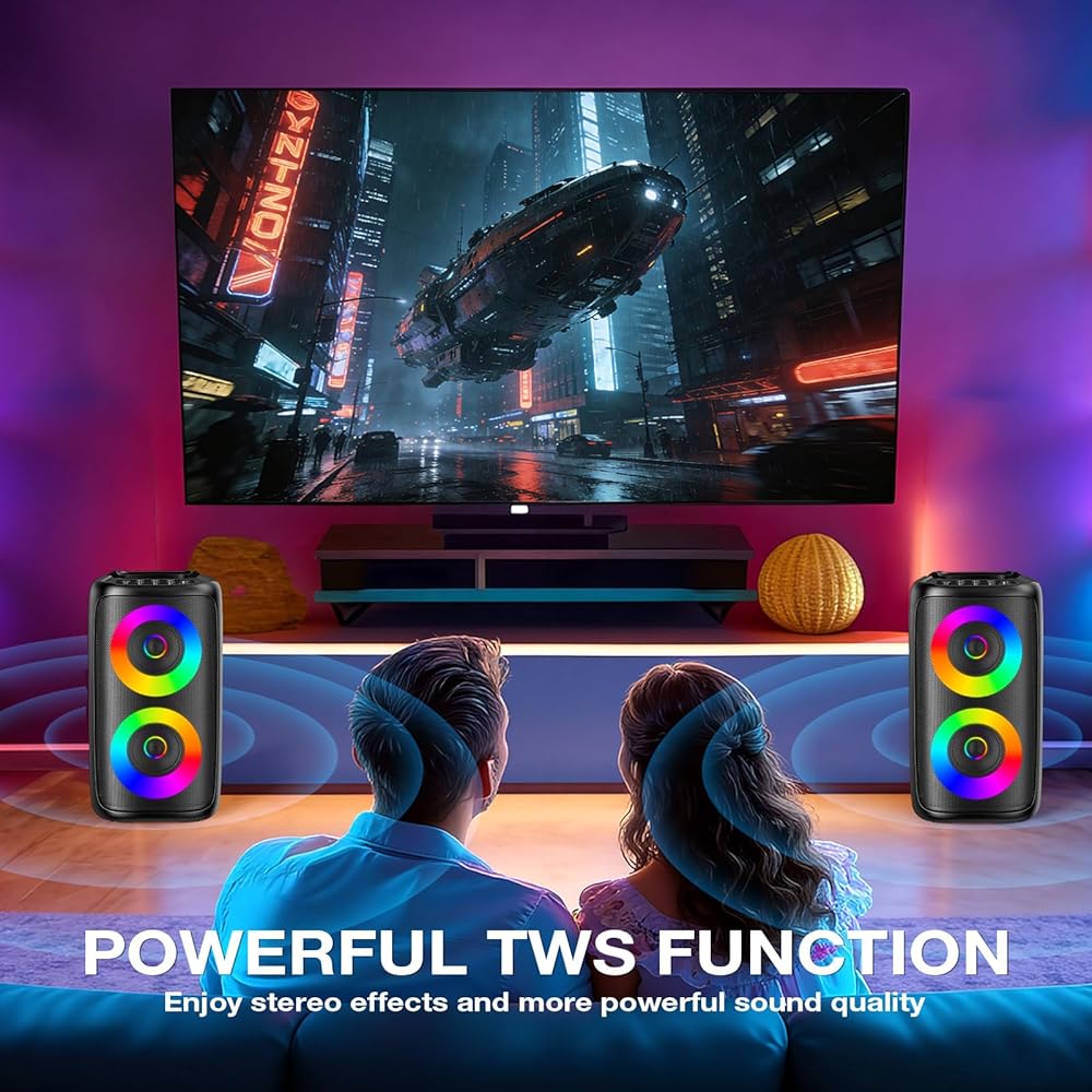 True Wireless Stereo (TWS) Mode: Come with TWS technology, you can connect two speakers wirelessly to create true stereo sound. Enjoy a wider soundstage and more powerful audio that surrounds you—making every karaoke night louder, richer, and more exciting