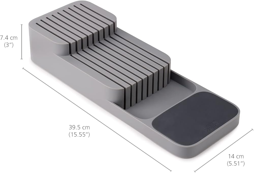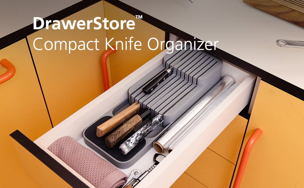 Joseph Joseph 85120 DrawerStore Kitchen Drawer Organizer Tray for Knives Knife Block, Gray.