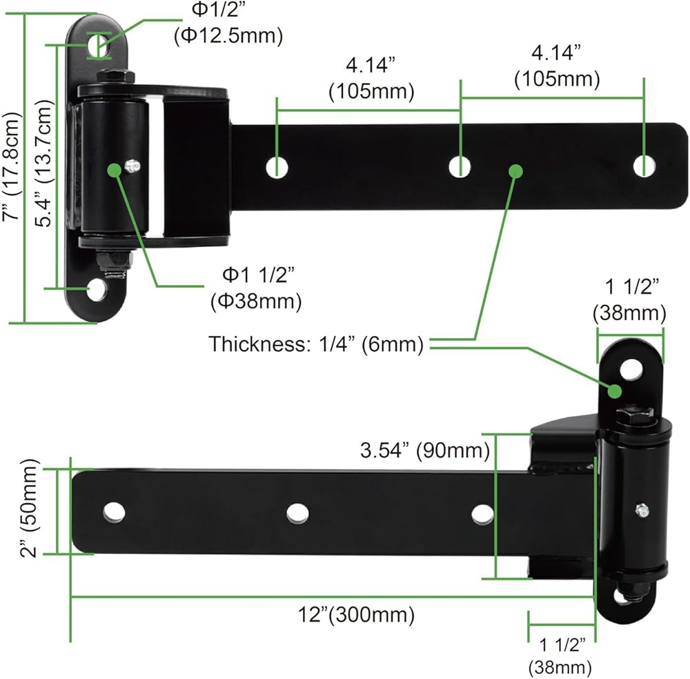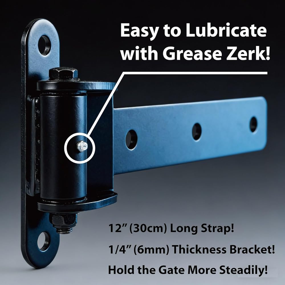 【Thick and Long Strap for Gate/Door Moves Smoothly and Steadily】The strap of the hinge is 1' (30cm) long and 2.36" (6mm) thick which is real heavy duty and makes it's ideal for large heavy wooden or metal gate/door up to 1100 lbs (500kgs)!