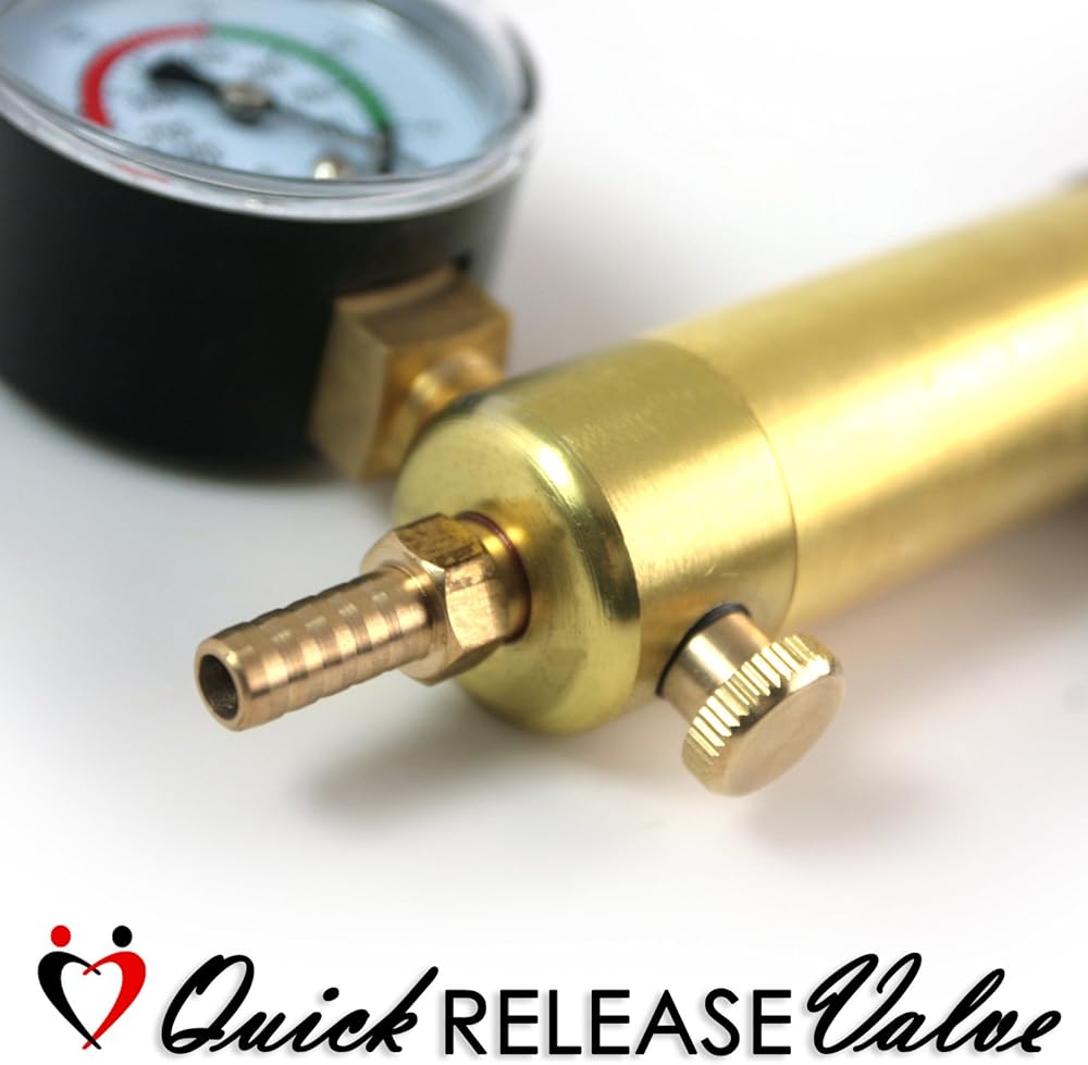 مقبض مضخة تفريغ LeLuv Ultima - غرفة نحاسية مع مقابض مطاطية مبطنة باللون الأزرق - تم تثبيت المقياس