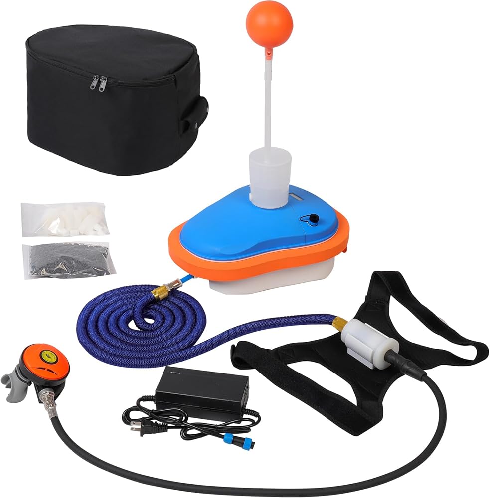 جهاز تهوية للغوص بالبطارية، نظام غوص سكوبا قابل لإعادة الشحن مع بطارية 8900 مللي أمبير في الساعة، نظام غوص بدون خزان معتمد من شركة الطيران مع خرطوم تنفس بطول 23 قدمًا ومنظم للغوص الترفيهي