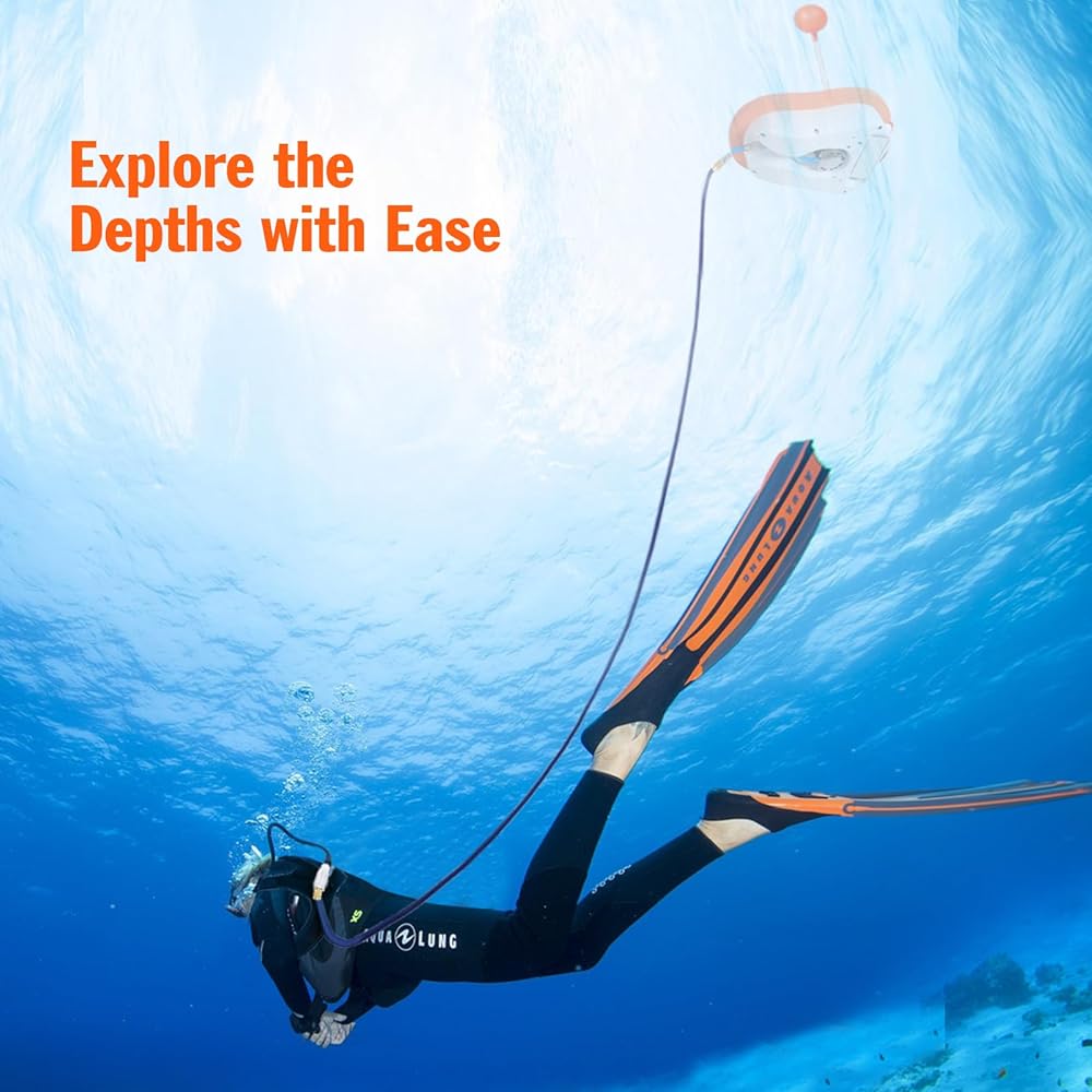 تحت الماء بحد أقصى 23 قدمًا لمدة 50 دقيقة: يتيح لك نظام التنفس تحت الماء هذا الغوص بعمق يصل إلى 23 قدمًا بثقة، ويوفر ما يصل إلى 50 دقيقة من إمداد الهواء المستمر. مثالية لاستكشاف الشعاب المرجانية الضحلة أو المشاركة في الأنشطة الترفيهية تحت الماء