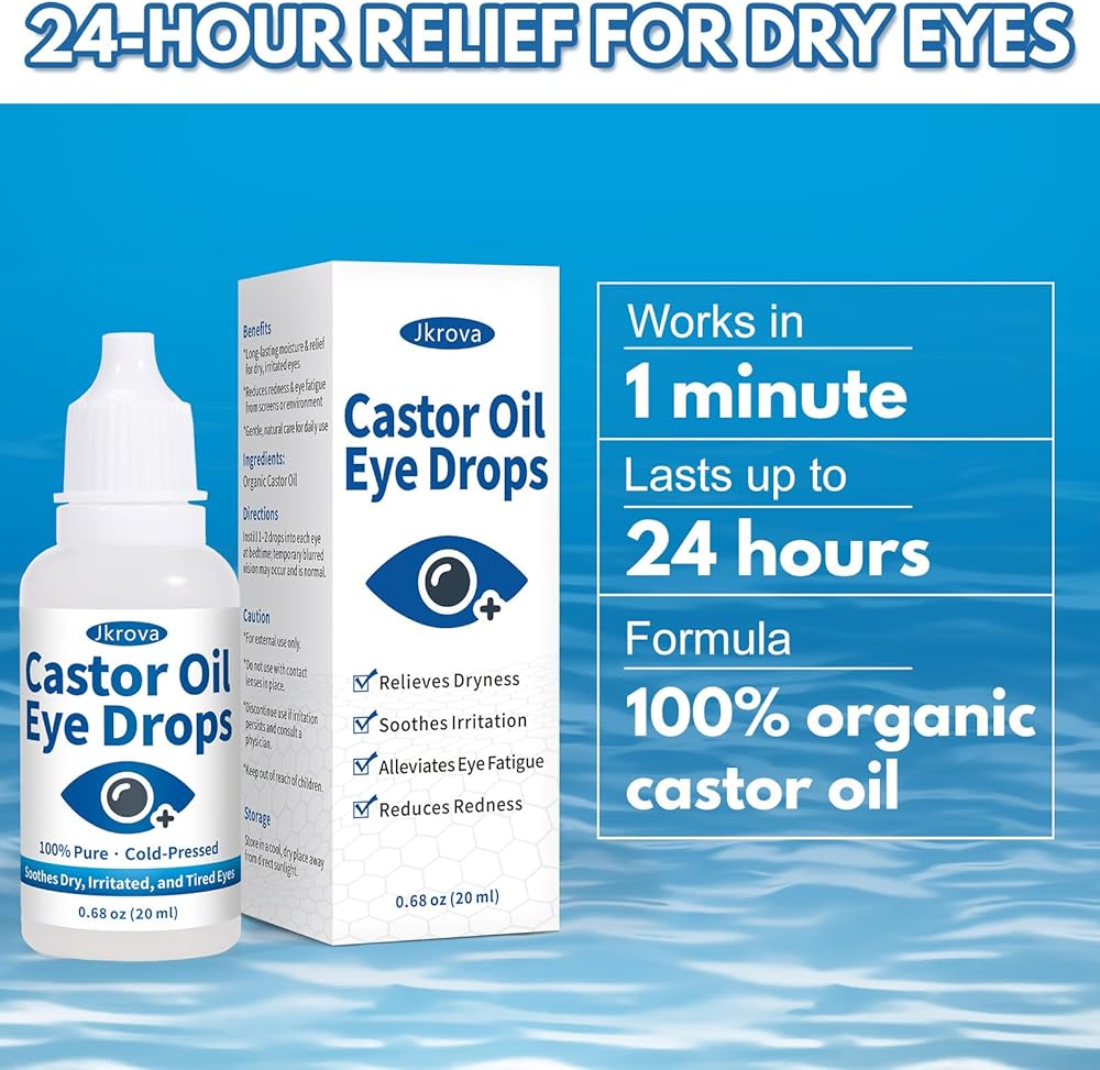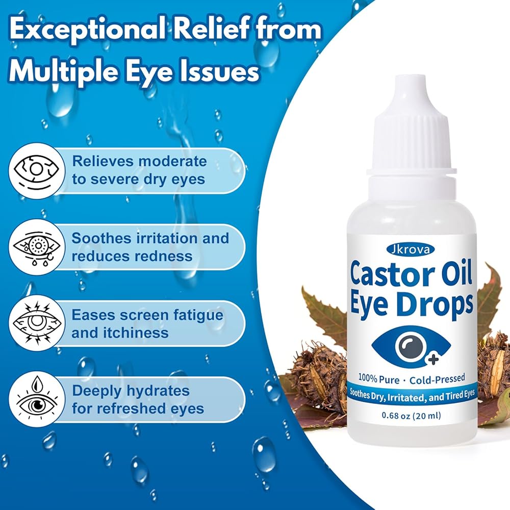 Organic Castor Oil Eye Drops – Pure Relief & Lasting MoistureGive your eyes the gentle, natural care they deserve with 100% pure, cold-pressed, hexane-free castor oil. Deeply hydrates and calms dryness for clear, refreshed eyes.