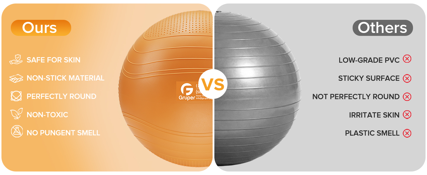 • مقاومة للانفجار والانزلاق: تتميز كرة التمرين جروبر ببنية قرص العسل المتقدمة المضادة للانفجار والتي تنكمش ببطء في حالة ثقبها، مما يقلل من مخاطر الإصابة، وآمنة ككرة الحمل أو كرة الولادة. يوفر التصميم الحصري للحواف المضادة للانزلاق وخرز التدليك أداءً استثنائيًا مضاد للانزلاق.
