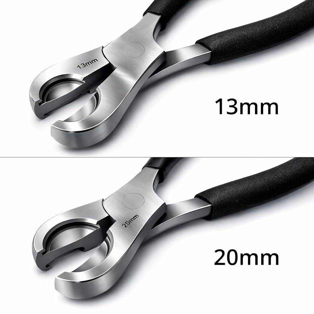 تناسب قوارير مجعدة مقاس 13 مم و20 مم - مصممة لإزالة أغطية تجعيد الألومنيوم مقاس 13 مم و20 مم باستخدام أداة واحدة - لا حاجة إلى تبديل أدوات فك الأغطية أثناء سير عمل القارورات متعددة الأحجام.