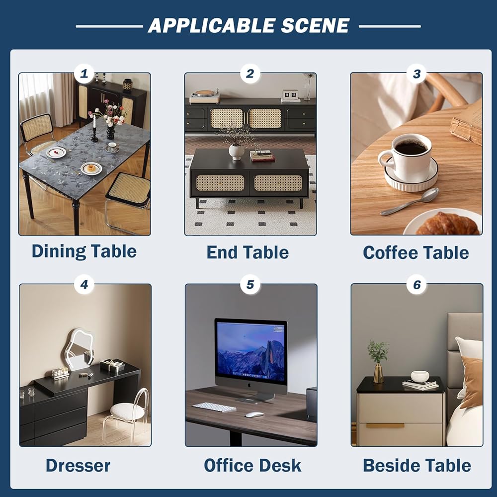 سطح الملمس: مناسب لأي سطح أثاث، مثل طاولة الطعام؛ طاولة خشبية زجاج؛ رخام؛ مكتب مكتب؛ كتابة أجهزة الكمبيوتر المكتبية؛ طاولة القهوة والنهاية؛ طاولة تلفزيون أرضية صلبة وما إلى ذلك. عند استخدامها، يرجى إبقاء الجانب المصنفر بالقرب من سطح الطاولة