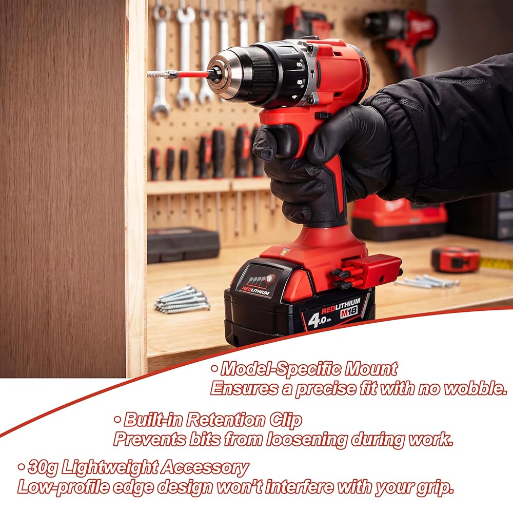 متوافق مع أدوات Milwaukee M18 المصممة لتناسب منصات أدوات M18، يتم تركيب حامل الأدوات m18 هذا بشكل آمن ليؤثر على السائقين والمثاقب من أجل تخزين ثابت للقطع على الأداة.
