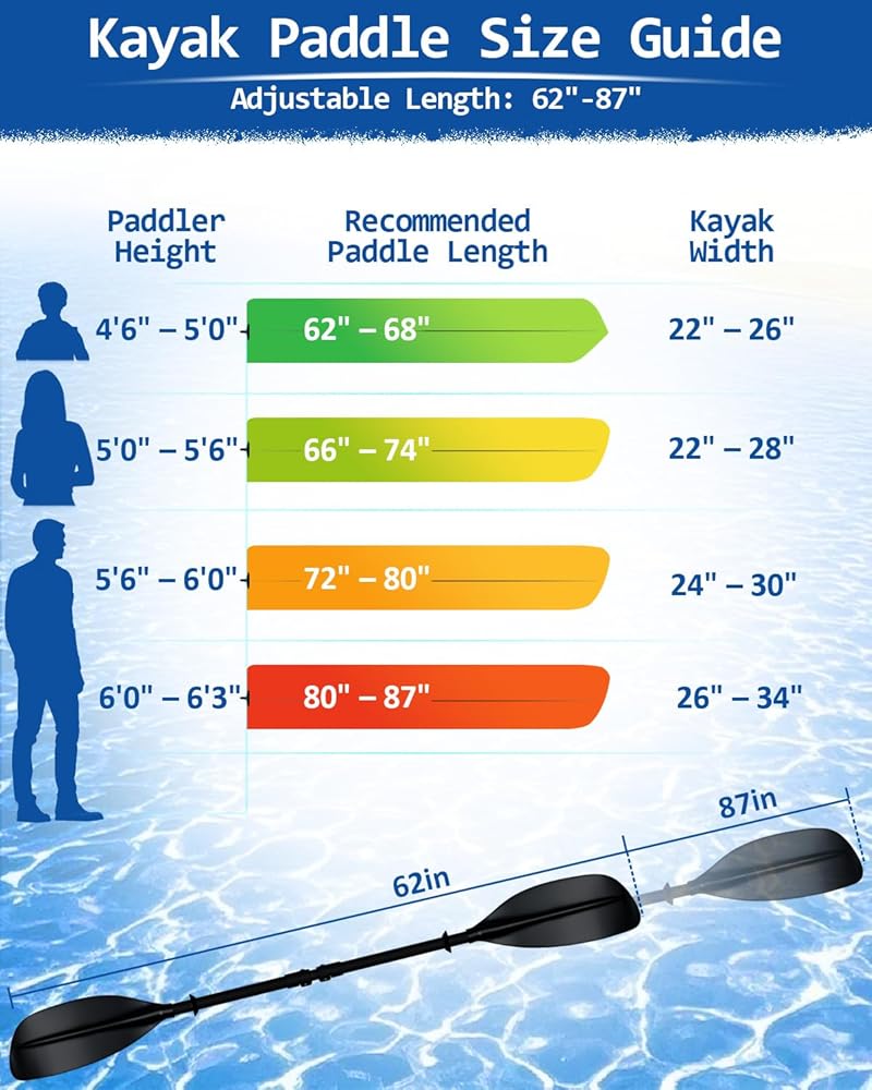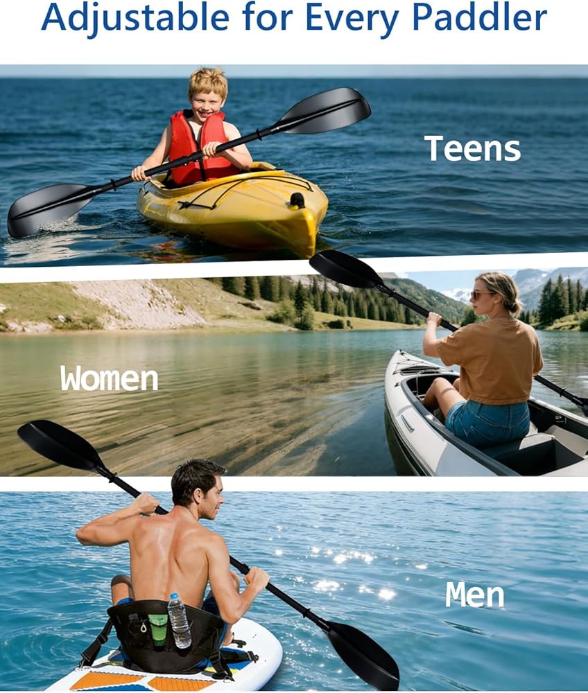 With an adjustable length from 62" to 87", this paddle fits teens, adult women, and most men—making it a practical choice for families or anyone using different kayaks.