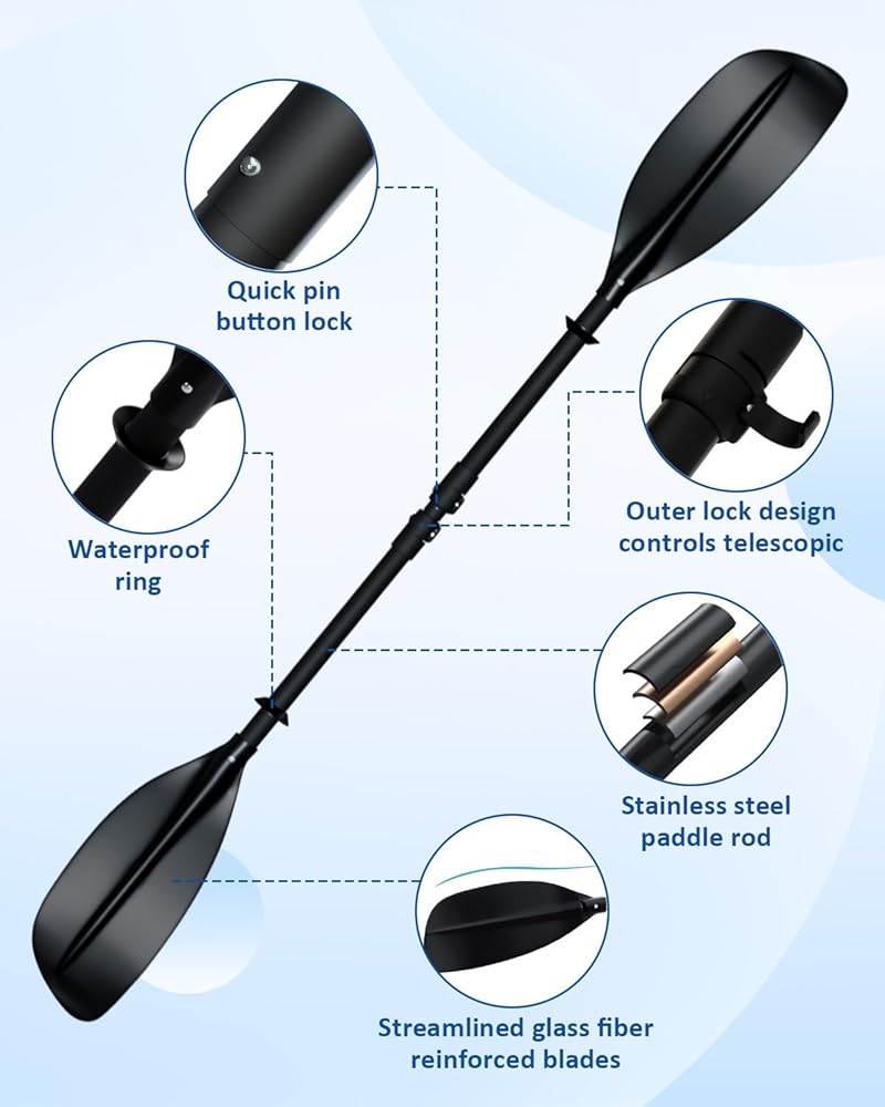 The fiberglass-reinforced blades deliver smoother, more efficient strokes with less resistance, helping you paddle with better control and less effort—even if you're just getting started.