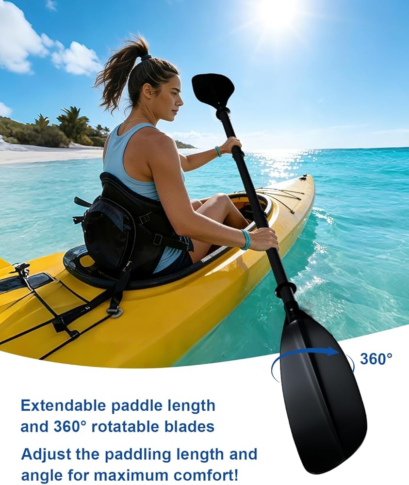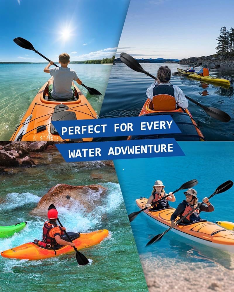 Adjustable Length for the Whole Family – Featuring a unique telescopic design with circular locking clamps at both ends, this adjustable kayak paddle extends from 62 to 87 inches, making it ideal for teens, adult women, and most men. One paddle fits the whole family and adapts to different kayak types