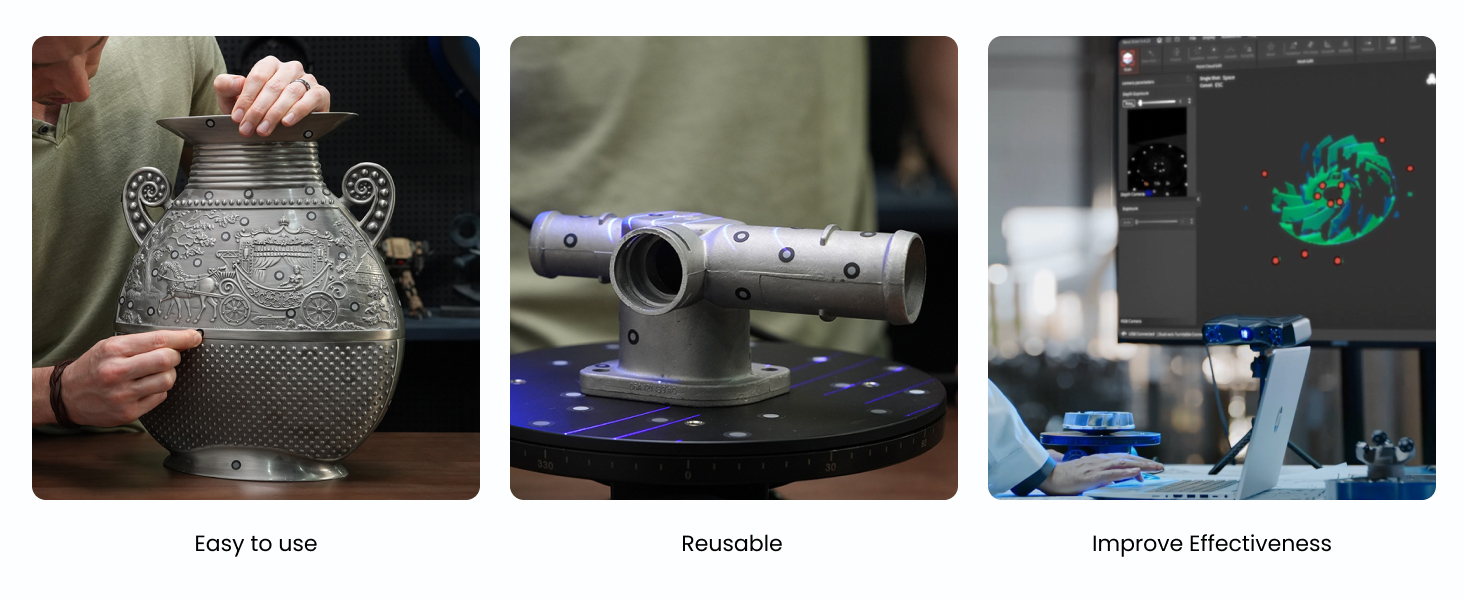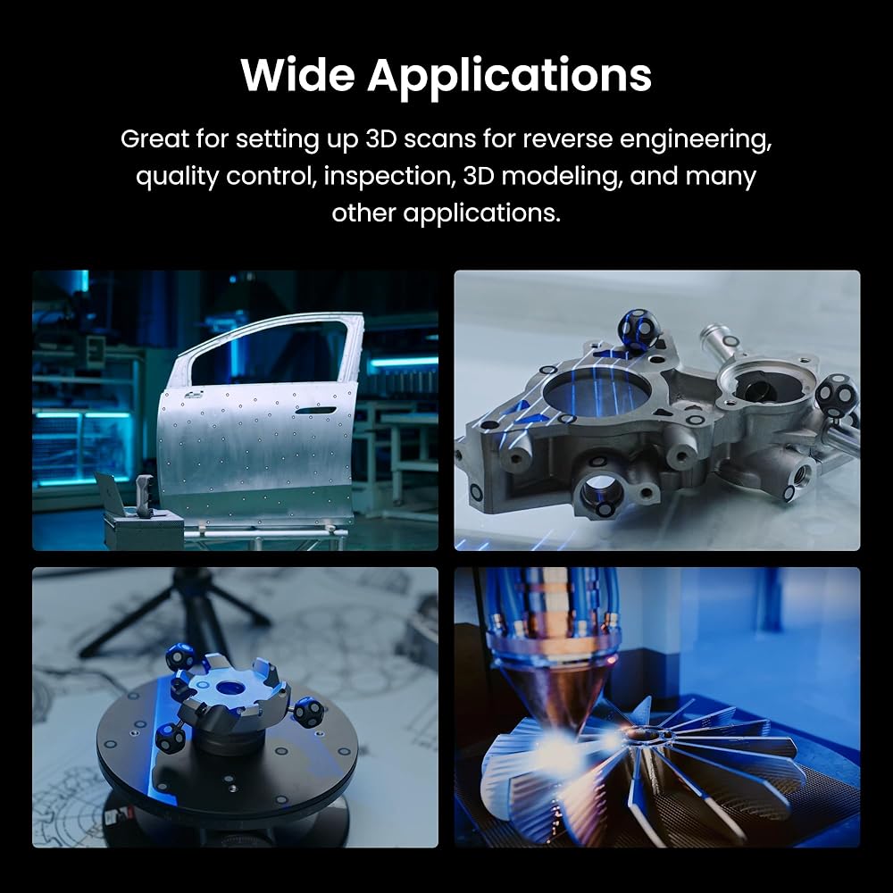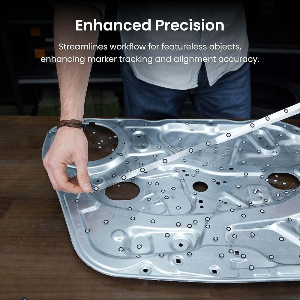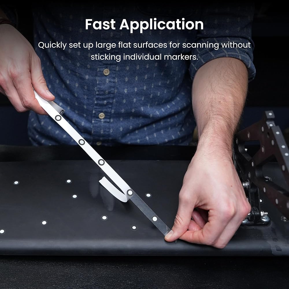 متعدد الاستخدامات: يلتصق الشريط بشكل آمن على الأسطح المختلفة، بما في ذلك المعدن والبلاستيك. إنه أمر رائع لإعداد عمليات المسح للهندسة العكسية ومراقبة الجودة والفحص والنمذجة ثلاثية الأبعاد والعديد من التطبيقات الأخرى.