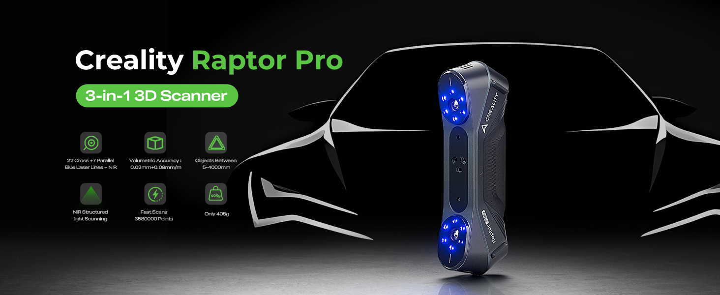 الماسح الضوئي Creality CR-Scan Raptor Pro ثلاثي الأبعاد للطباعة ثلاثية الأبعاد - سرعة عالية 60 إطارًا في الثانية - 22+7 ليزر أزرق ليزر أزرق وNIR - دقة 0.02 مم - 24 بت كامل - يقوم بمسح الكائنات بين 0.2-157 بوصة in Kuwait