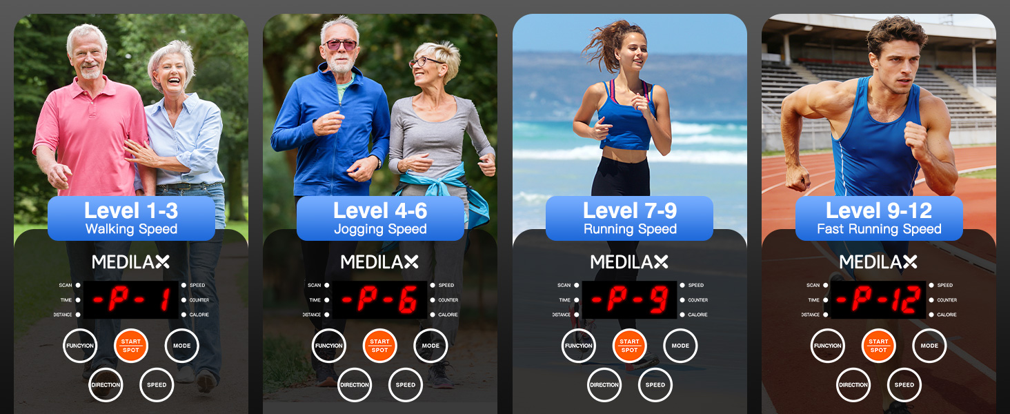 - Adjustable resistance: 12 levels (HR-1 ~ HR-12) and 3 automatic mode speeds (P1 ~ P3) to suit fitness levels, from gentle therapy to active workouts.