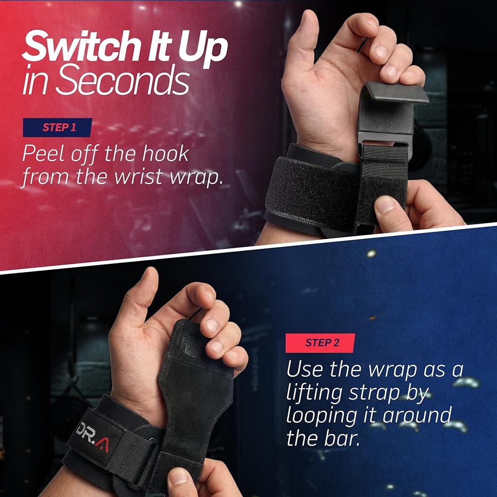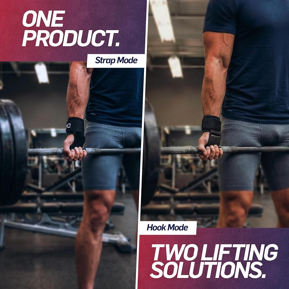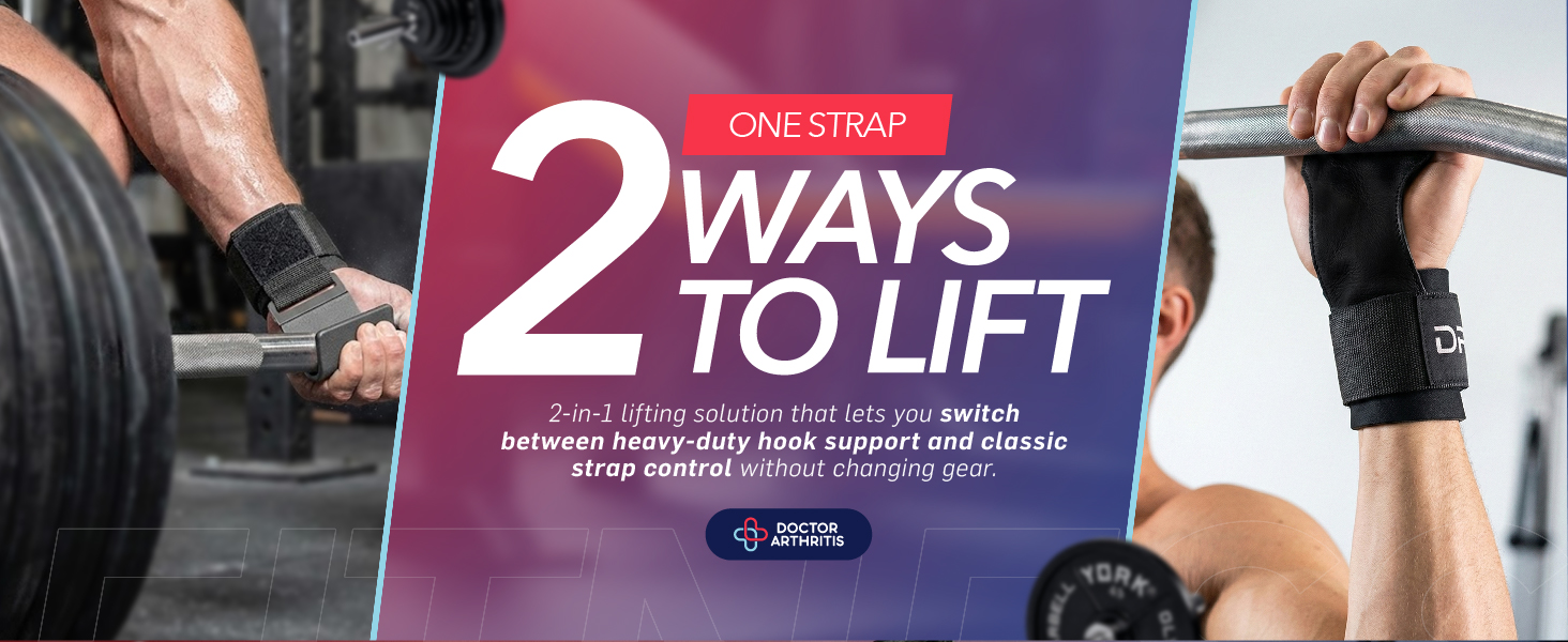 نظام رفع 2 في 1: احصل على قوة خطافات الرفع ومرونة أحزمة المعصم في تصميم ذكي واحد. قم بتبديل الأوضاع في ثوانٍ لتتناسب مع تمرينك دون تغيير أو الحاجة إلى معدات رياضية إضافية.