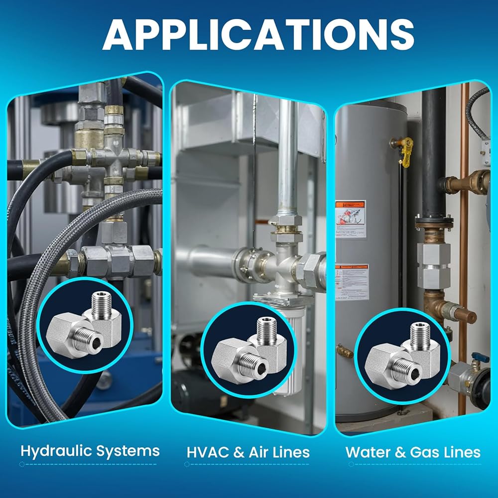تركيب سهل بدون لحام - يتم شدّه يدويًا، ثم يتم شد مفتاح الربط باستخدام تصميم سداسي؛ متوافق مع المواد المانعة للتسرب القياسية وشريط التيفلون للاتصالات المانعة للتسرب.