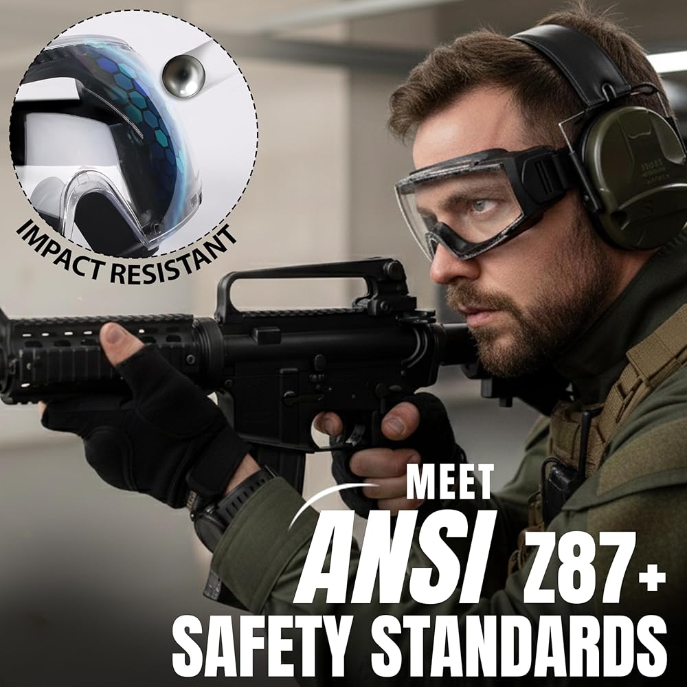 • حماية من الصدمات ANSI Z87.1: تتوافق نظارات الأمان Z87 مع معايير ANSI Z87.1 لمقاومة الصدمات، مما يوفر حماية موثوقة للعين ضد الغبار والحطام والرذاذ والجسيمات المحمولة بالهواء.