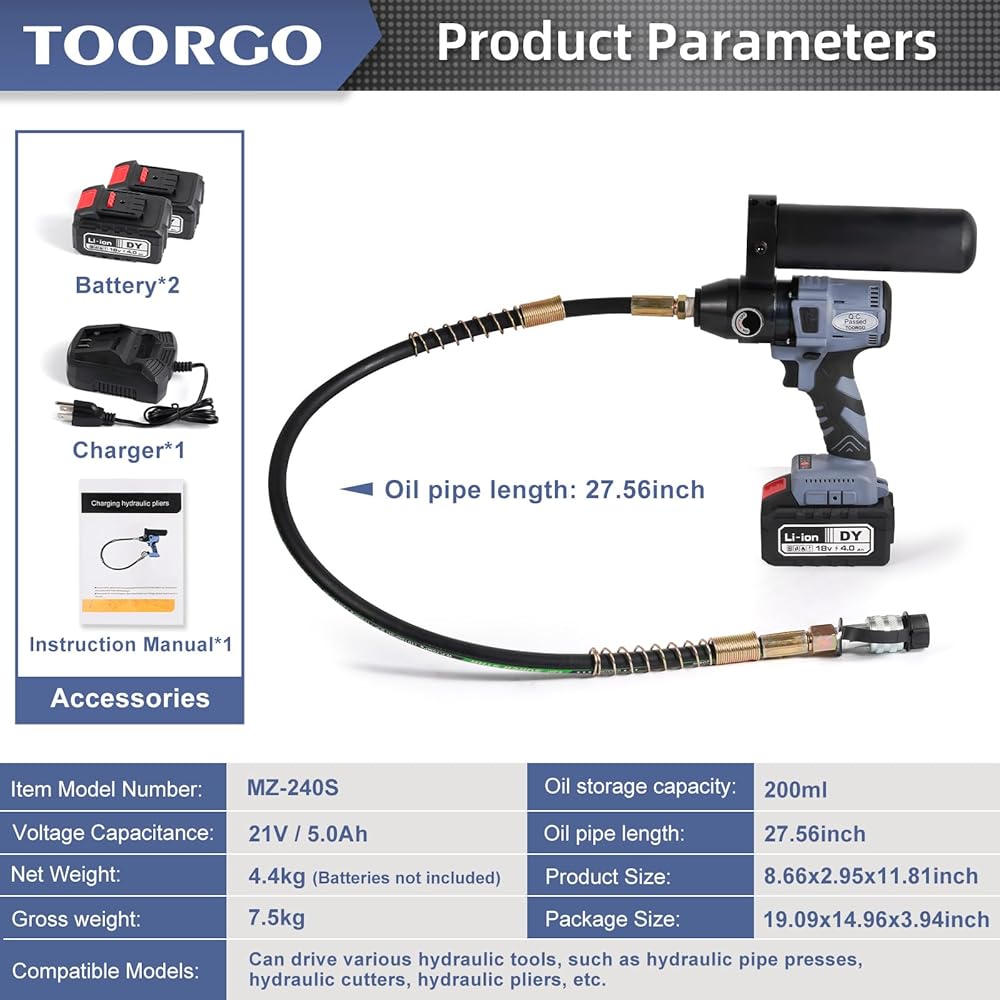 مضخة هيدروليكية كهربائية، مخرج زيت ZG3/8 بوصة، أنبوب 2.3 قدم، مضخة هيدروليكية محمولة قابلة لإعادة الشحن للرافعة الهيدروليكية أو الأداة الهيدروليكية