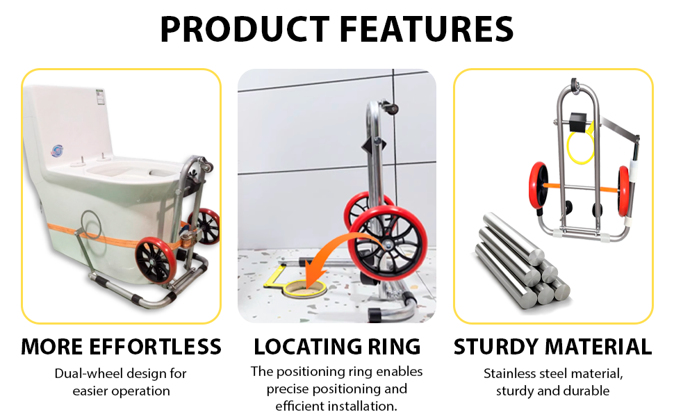 تصميم مريح للرفع الثقيل - التشغيل المستقيم أو الإمالة يجعل رفع المراحيض الثقيلة أسهل مع تقليل إجهاد الظهر. يقلل الهيكل الصحي من الاتصال المباشر لعملية تركيب أكثر نظافة وأمانًا.