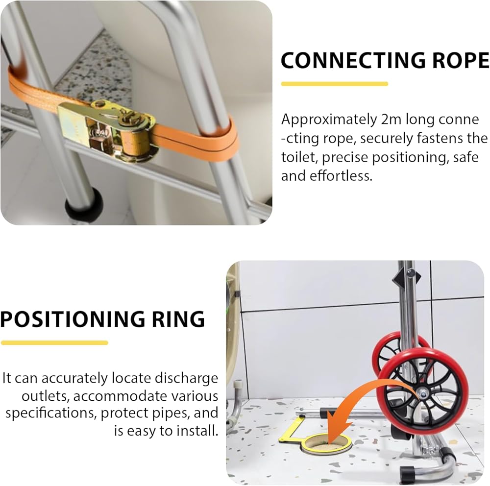 تركيب خالٍ من الفوضى - يحافظ على ارتفاع المرحاض بشكل آمن من البداية إلى النهاية. لا حاجة للمس الأرض أو تنظيف حلقات الشمع. عجلات مطاطية تحمي أسطح الأرضيات أثناء الحركة.