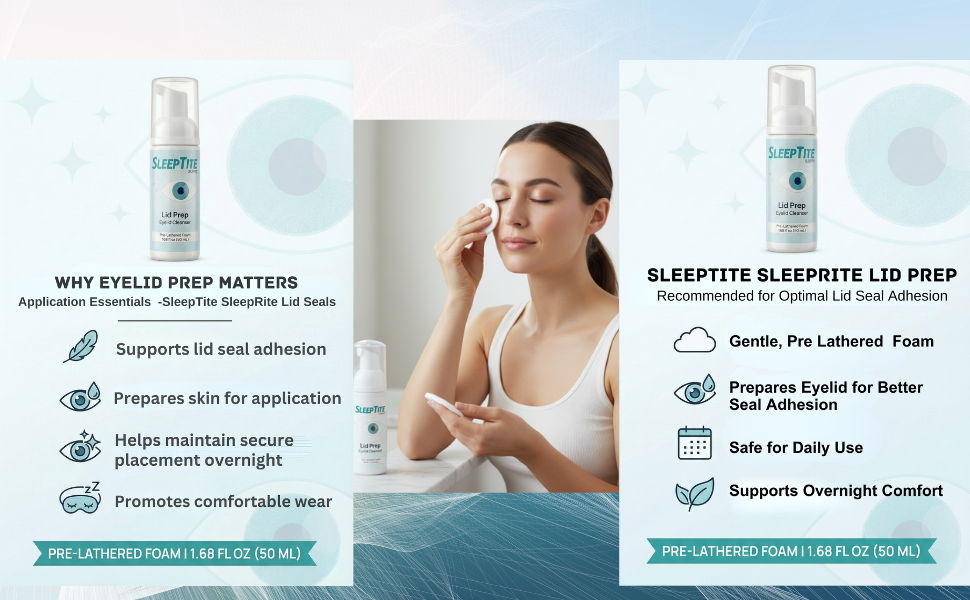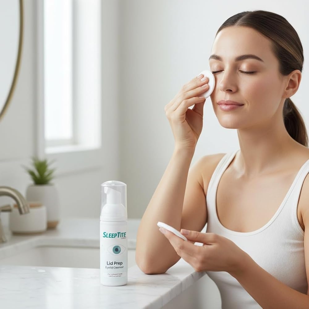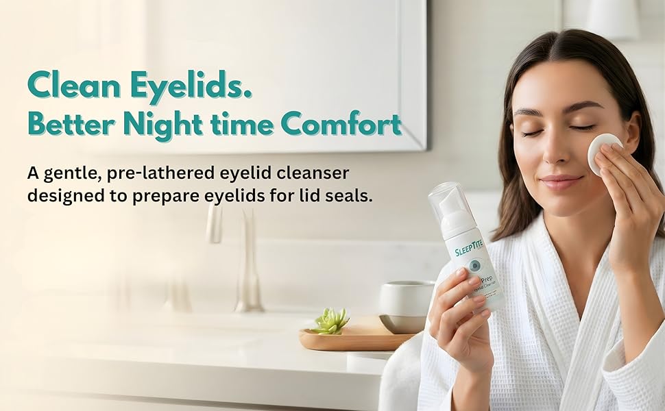 منظف متطور للجفون للنظافة اليومية - استمتع بتنظيف عميق ولطيف مع SleepTite Lid Prep. تعمل تركيبتنا المتخصصة على إزالة الزيوت وحبوب اللقاح والحطام الشمعي والجلد المتقشر بشكل فعال من الجفون والرموش. يعد غسول الجفن اليومي هذا الخطوة الأولى الأساسية للحفاظ على رؤية صحية ومنع تراكم البكتيريا.