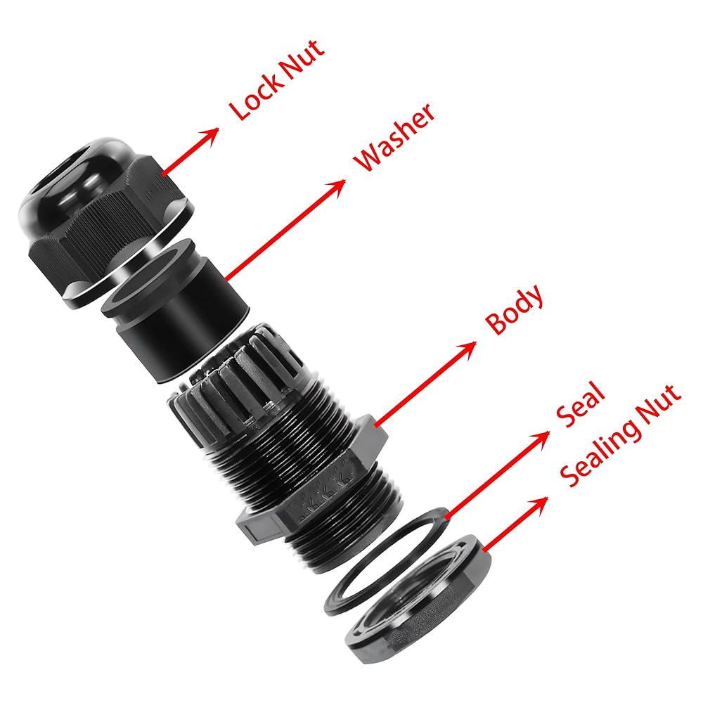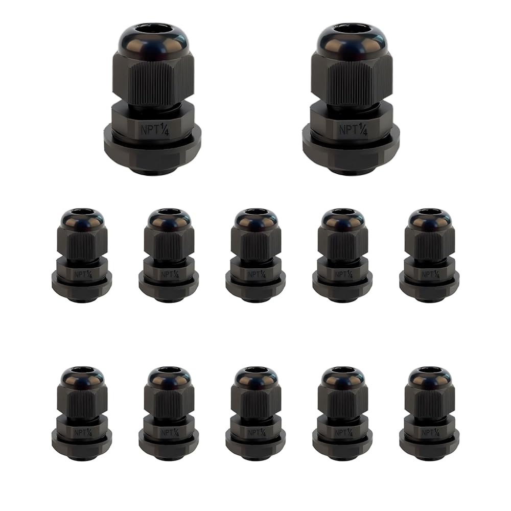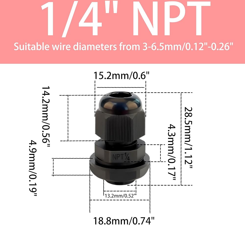 • Package Including: You will receive 10PCS 1/4 NPT waterproof adjustable cable gland. Each connector includes quality rubber gaskets and precision locknuts for optimal waterproofing. Flexible cord grips accommodate various wire diameters from 3-6.5mm.