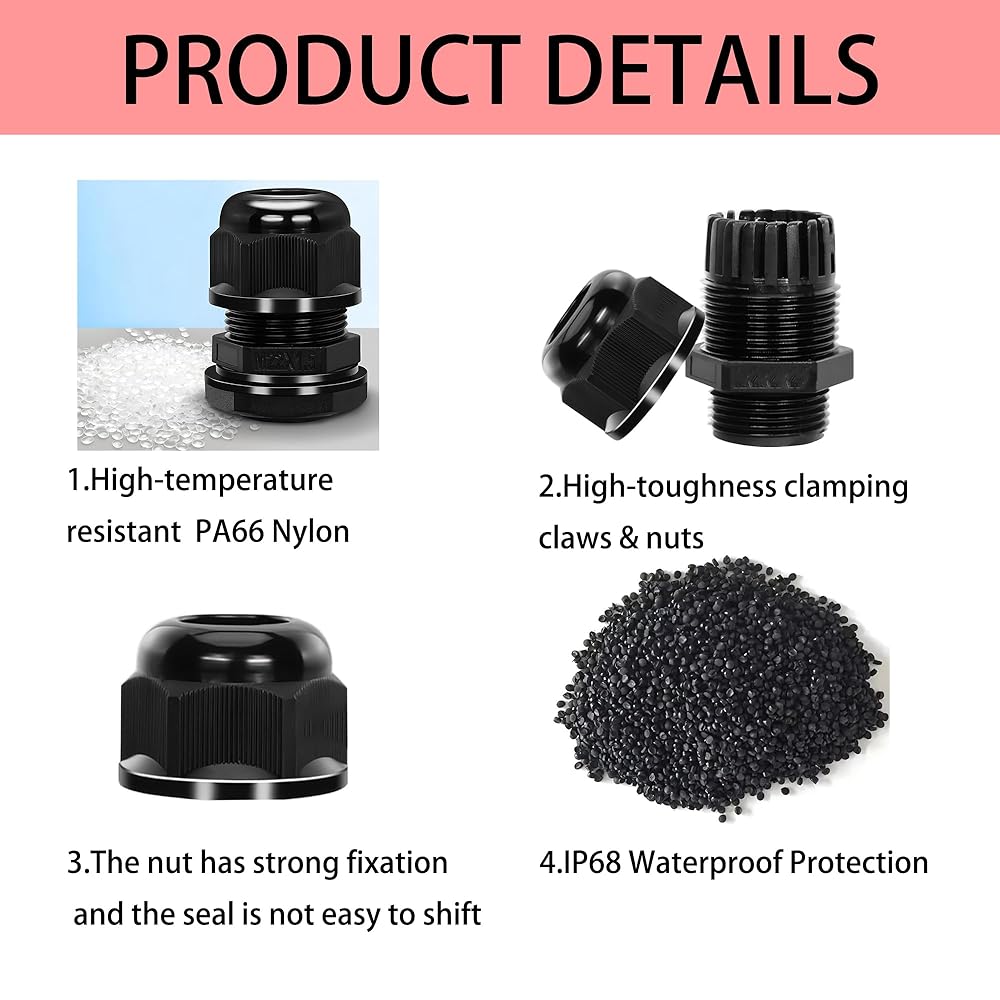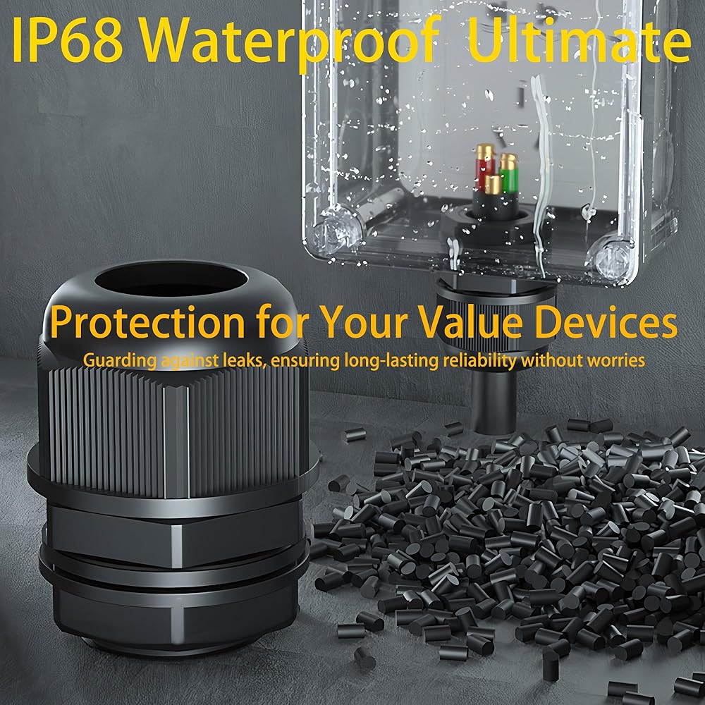 Waterproof Cable Protection: IP68 rated nylon glands seal electrical connections against moisture and debris. Ideal for outdoor installations, industrial equipment, and junction box applications.