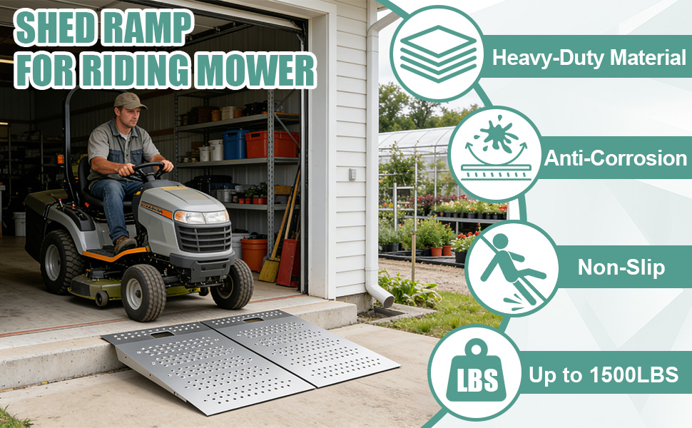 دعم عالي التحمل: مصنوع من الفولاذ عالي القوة، مجموعة منحدر السقيفة هذه تدعم ما يصل إلى 1500 رطل. منحدرات مثالية للسقائف، فهي تتعامل بسهولة مع جزازات الركوب والجرارات وعربات الحدائق الثقيلة.