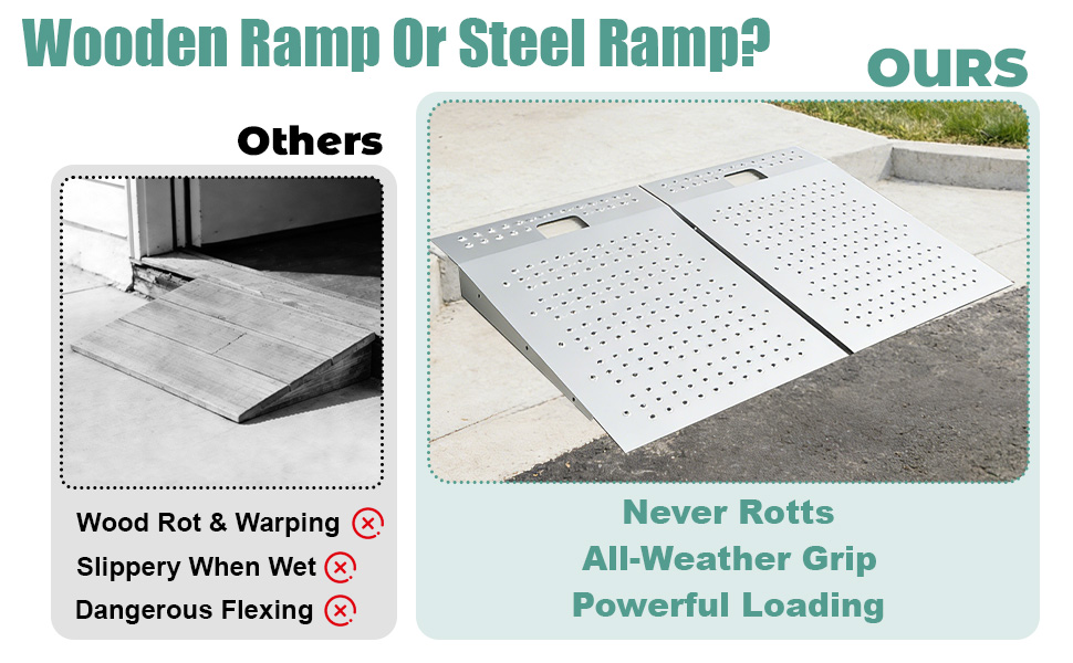 بناء مناسب لجميع الأحوال الجوية: على عكس الخيارات الخشبية، فإن منحدر المرآب هذا يقاوم الصدأ والتآكل في جميع المناخات. تم تصميم منحدرات السقيفة الخاصة بنا لركوب الجزازة لتدوم خلال الشمس والمطر والثلج.
