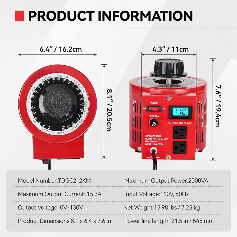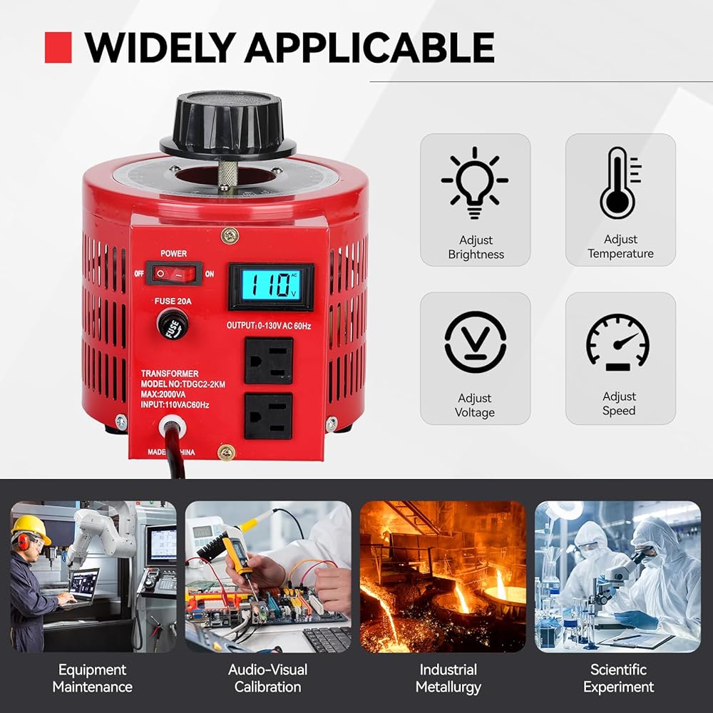 سهل الاستخدام: يتميز محول الجهد المتغير التلقائي بقدرة 2000 فولت أمبير بشاشة LCD رقمية تعرض جهد الإخراج الحالي. يضمن تصميم الإضاءة الخلفية الوضوح والرؤية، ليلاً أو نهارًا. يعد ضبط الجهد أمرًا سهلاً باستخدام المقبض العلوي المصمم لتوفير الراحة والمرونة. تتميز لوحة الميزان المعدنية بعلامات واضحة وسهلة القراءة، مما يتيح لك الاتصال بالجهد الدقيق الذي تحتاجه بسرعة.