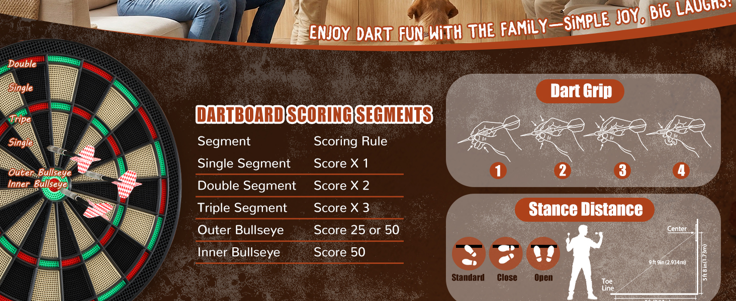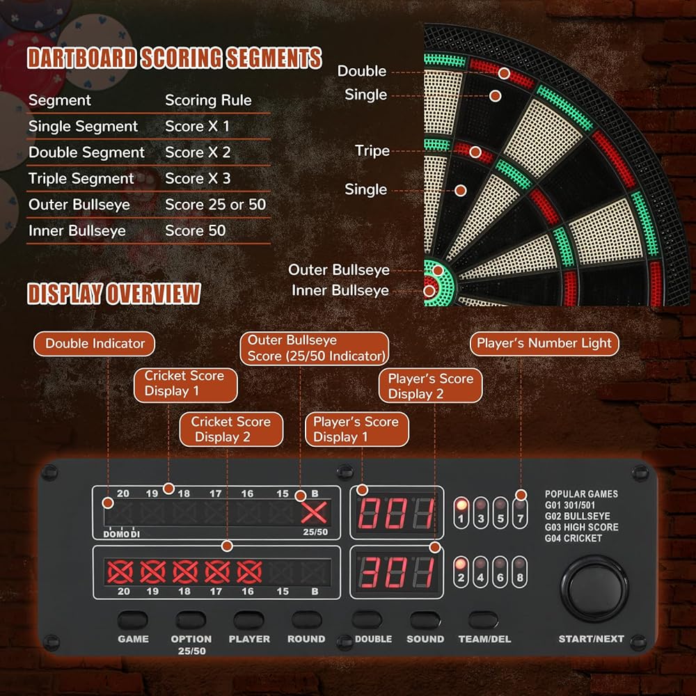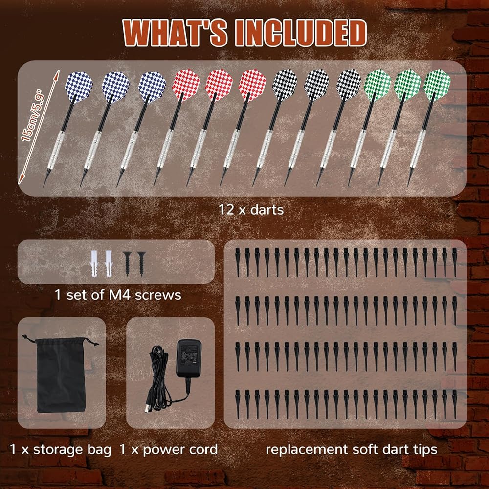 • ملحقات كاملة وسهولة التركيب: تتضمن 1 لوحة رمي السهام الإلكترونية، و12 سهمًا ذات أطراف ناعمة، وأكثر من 50 طرفًا ناعمًا قابلاً للاستبدال، ومحول طاقة واحد، وحقيبة تخزين سوداء ومجموعة واحدة من براغي التوسيع M4، مما يتيح التثبيت السريع والبسيط عن طريق تحديد موضع الجدار الصحيح، وتثبيت البراغي وتعليق لوحة رمي السهام.