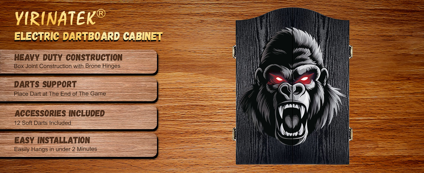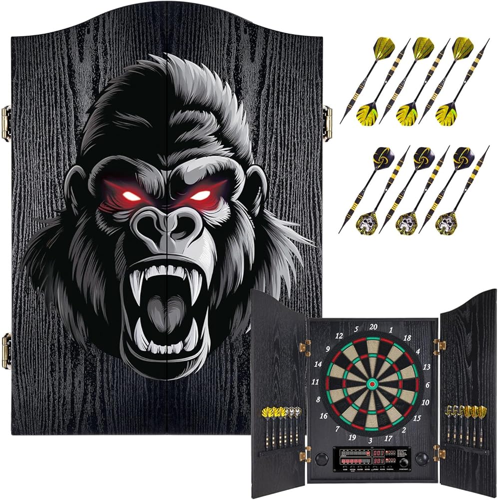 لوحة رمي السهام الإلكترونية، مجموعة خزانة لوحة رمي السهام المزخرفة للبالغين [12 * سهام ذات أطراف ناعمة برونزية] [وضع لعبة الكريكيت] - خزانة لوح رمي السهام الكهربائية الخشبية لغرف الألعاب العائلية - غوريلا