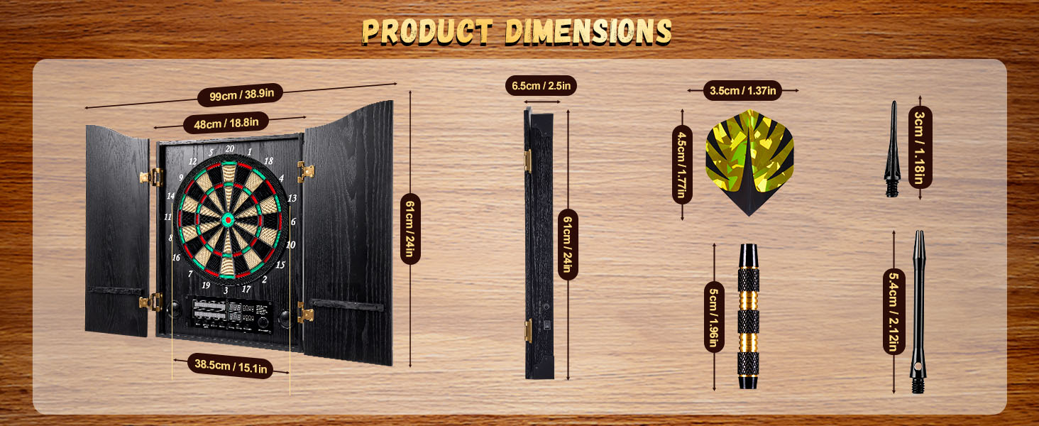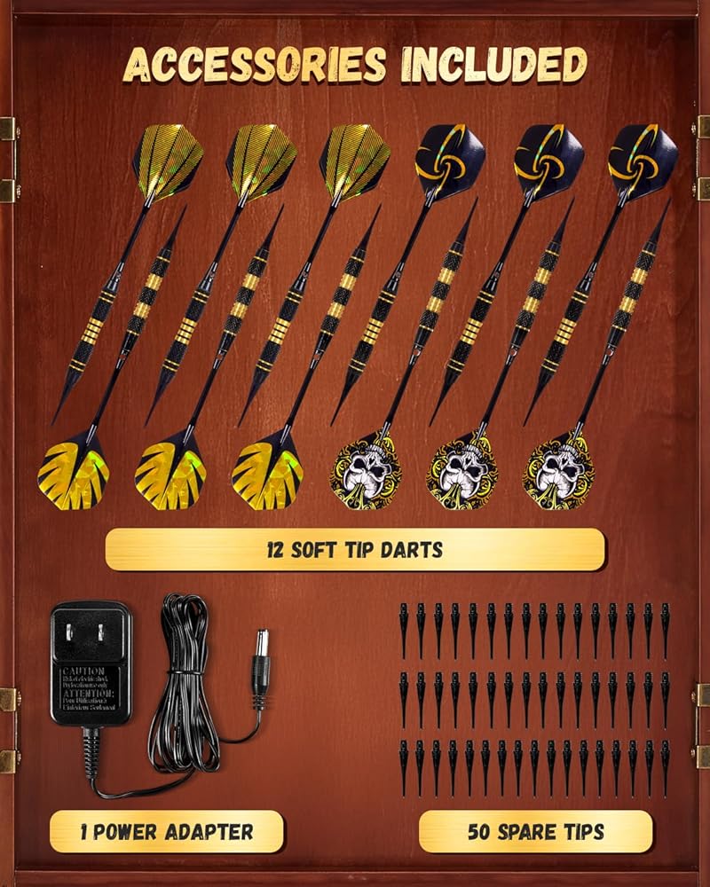 [تمتزج بسلاسة مع ديكور منزلك] تتميز لوحة رمي السهام الإلكترونية الأنيقة بتصميم أنيق وفني يكمل أي ديكور داخلي. بفضل مظهره الكلاسيكي، فإنه يتناسب بسهولة مع أي غرفة، مما يضيف لمسة من الرقي. تعمل الحرفية الممتازة في خزانة لوحة رمي السهام هذه أيضًا على رفع مستوى ديكور منزلك، مما يجعلها خيارًا رائعًا للألعاب الداخلية وإضافة جذابة لكهف الرجل أو الطابق السفلي.