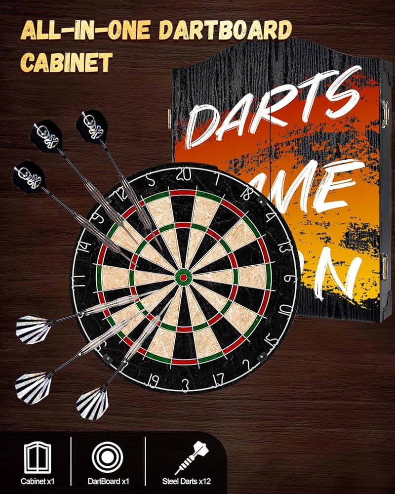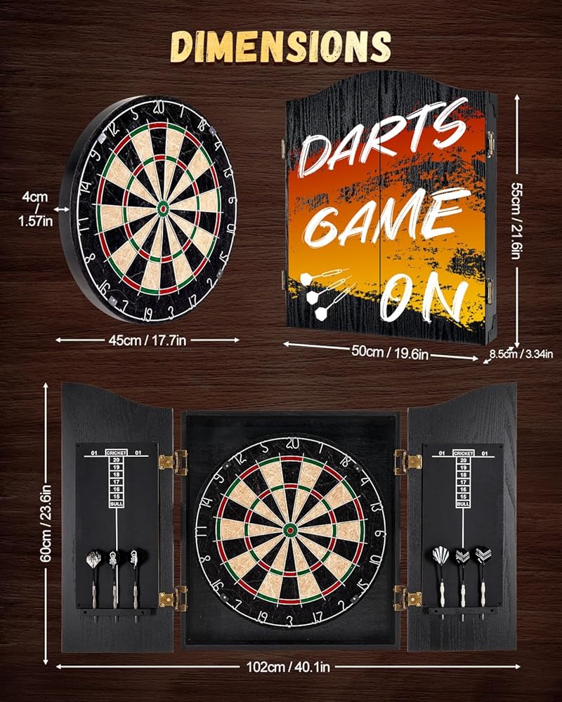 [تمتزج بسلاسة مع ديكور منزلك] تتميز مجموعة خزانة لوحة رمي السهام الأنيقة من السيزال بتصميم أنيق وفني يكمل أي ديكور داخلي. بفضل مظهره الكلاسيكي، فإنه يتناسب بسهولة مع أي غرفة، مما يضيف لمسة من الرقي. تعمل الحرفية الممتازة في ألواح رمي السهام للبالغين أيضًا على رفع ديكور منزلك، مما يجعلها خيارًا رائعًا للألعاب الداخلية وإضافة جذابة لكهف الرجال أو الطابق السفلي.