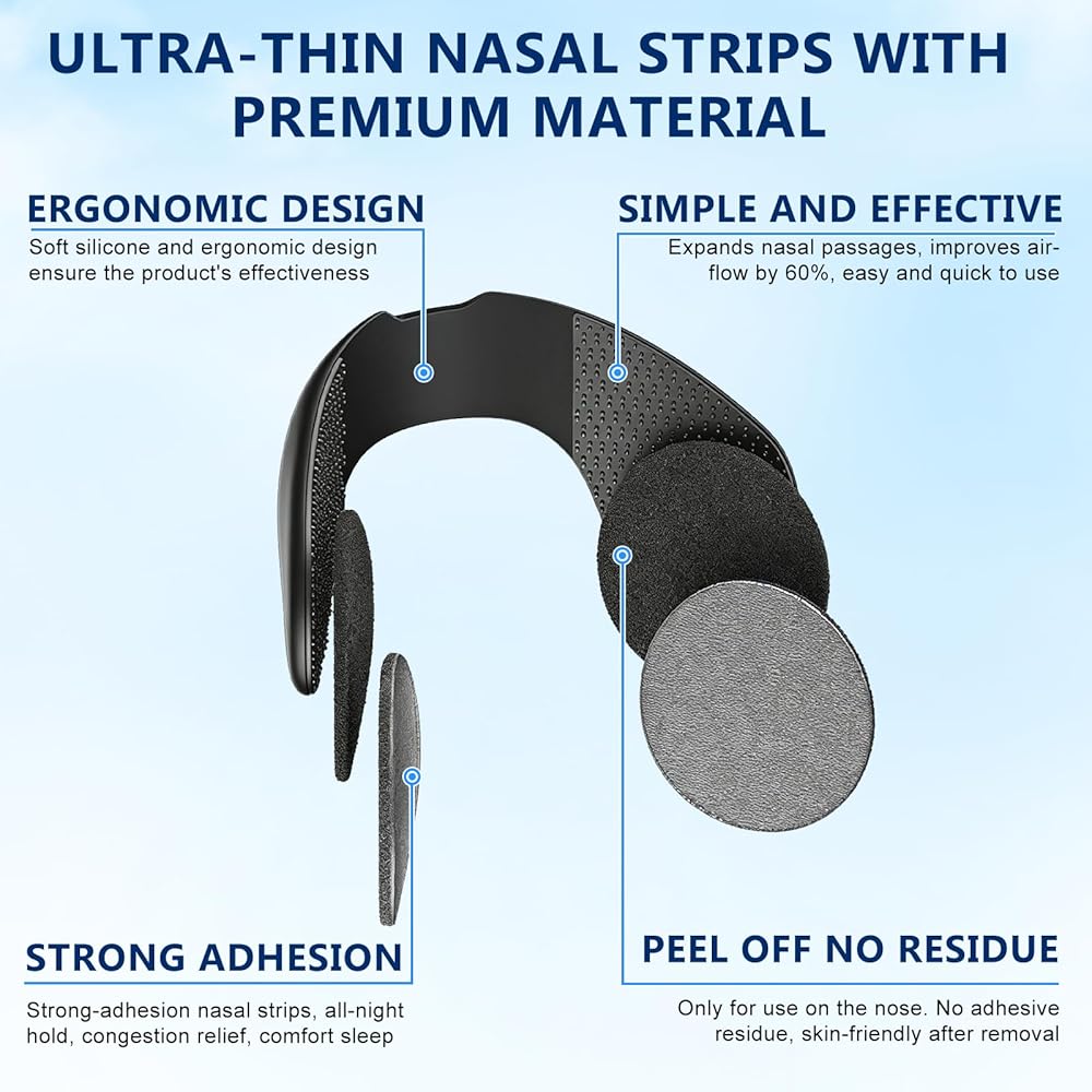 شرائط أنف للشخير، موسعات أنف قوية للغاية للنوم، شرائط أنف من السيليكون بتصميم خطاف وحلقة، تعمل على تحسين جودة التنفس والنوم - 60 قطعة، أسود
