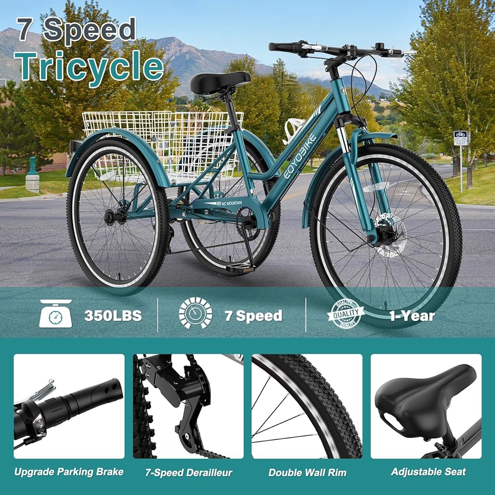 【تصميم جبلي ومستقر بثلاث عجلات】مصممة بإطار مستوحى من الدراجة الجبلية وهيكل متوازن ثلاثي العجلات، توفر هذه الدراجة ثلاثية العجلات للكبار قيادة مستقرة وواثقة للتنقل في المدينة والرحلات الخارجية والمنتزهات أو ركوب الممرات الخفيفة. مثالي للرجال والنساء من جميع الأعمار الذين يبحثون عن الأناقة والثبات