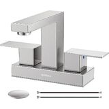 • تعزيز الراحة والكفاءة: من أجل سلامة عائلتك وراحتها، قمنا بتنعيم كل زاوية وحواف. تتيح مقابض صنبور الحمام ذات المقبضين تدفقًا سهلاً والتحكم في درجة حرارة الماء. ارتفاع الصنبور: 4.2 بوصة. وصول الصنبور: 4.5 بوصة.