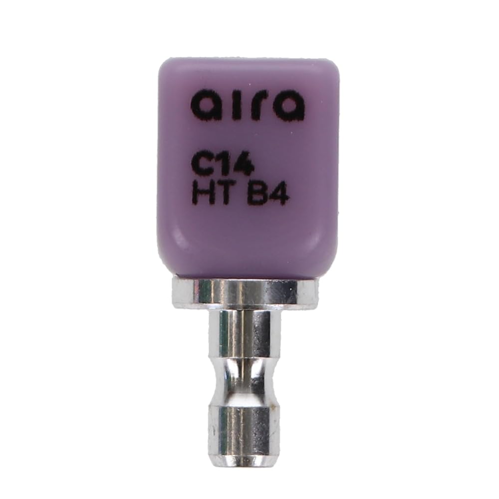 Aira 600128 DuraLux IPS e.max Type CAD /inLab HT B4 C14 5/Pk Equiv Ivoclar 626415. The Aira IPS e.max Type CAD blocks are composed of reliable lithium disilicate glass-ceramic, well-known for providing an exceptional balance between high flexural strength and natural, tooth-like esthetics. This particular block configuration is carefully engineered to achieve the optimal combination of opacity and natural appearance required for full-contour restorations like crowns and veneers.