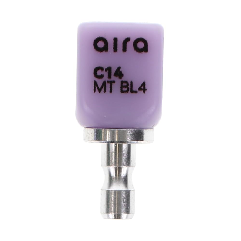 Aira 600146 DuraLux IPS e.max Type CAD /inLab MT BL4 C14 5/Pk Equiv Ivoclar 680034. The Aira IPS e.max Type CAD blocks are composed of reliable lithium disilicate glass-ceramic, well-known for providing an exceptional balance between high flexural strength and natural, tooth-like esthetics. This particular block configuration is carefully engineered to achieve the optimal combination of opacity and natural appearance required for full-contour restorations like crowns and veneers.