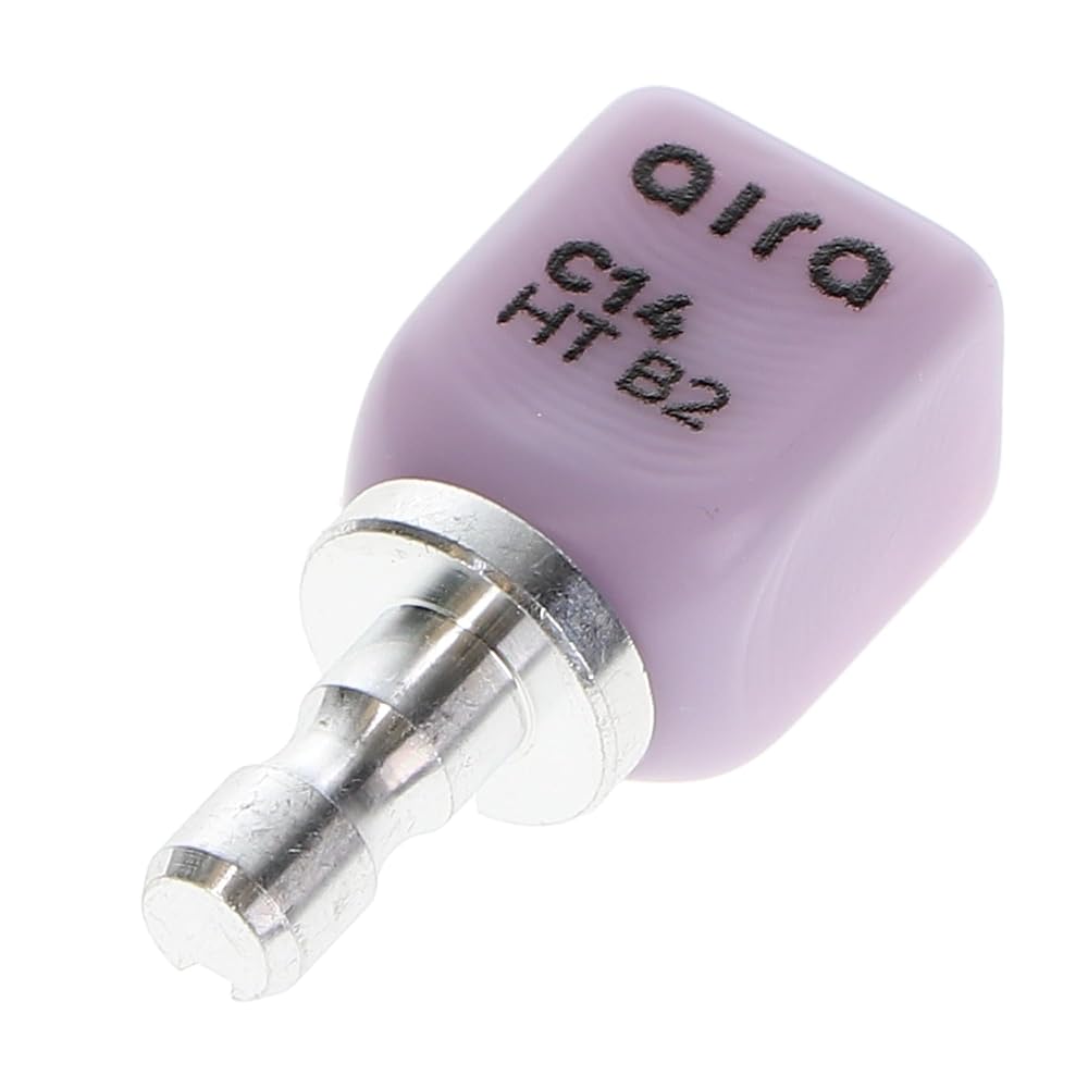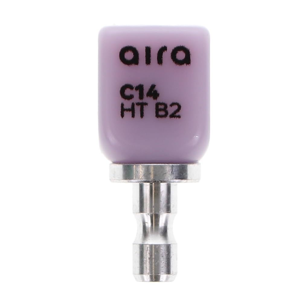 Aira 600126 DuraLux IPS e.max Type CAD /inLab HT B2 C14 5/Pk Equiv Ivoclar 626413. The Aira IPS e.max Type CAD blocks are composed of reliable lithium disilicate glass-ceramic, well-known for providing an exceptional balance between high flexural strength and natural, tooth-like esthetics. This particular block configuration is carefully engineered to achieve the optimal combination of opacity and natural appearance required for full-contour restorations like crowns and veneers.