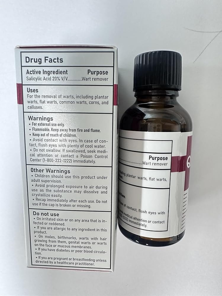 سائل مزيل الثآليل بحمض الساليسيليك بنسبة 20%، مزيل الثآليل بدون ألم للأخمصي، الشائع، الثآليل المسطحة، ذرة القدم لأجزاء متعددة من الجسم (عبوة من قطعة واحدة)