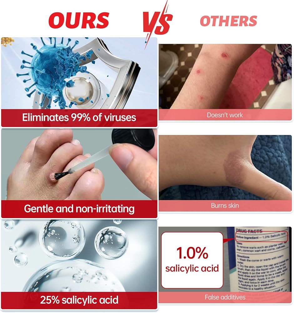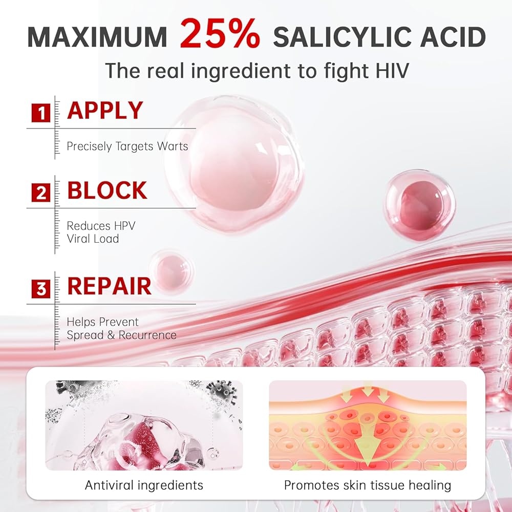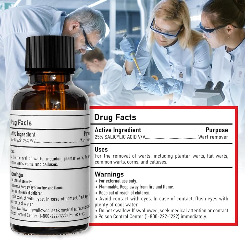 ✅تركيبة ذات قوة قصوى: تم تركيبها باستخدام حمض الساليسيليك بنسبة 25%، وهي القوة القصوى المسموح بها لإزالة الثآليل التي لا تستلزم وصفة طبية، وهي مصممة للمساعدة في تنعيم وإزالة الثآليل الشائعة والثآليل الأخمصية ومسامير القدم ومسامير القدم تدريجيًا.