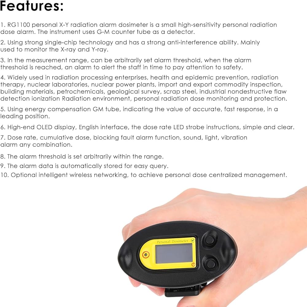 ✔ Widely Used In Radiation Monitoring -- Widely used in radiation processing enterprises, health and epidemic prevention, radiation nuclear laboratories, nuclear power plants, import and export commodity inspection, building materials, petrochemicals, geological survey, scrap steel, industrial nondestructive detection ionization Radiation environment, personal radiation dose monitoring and