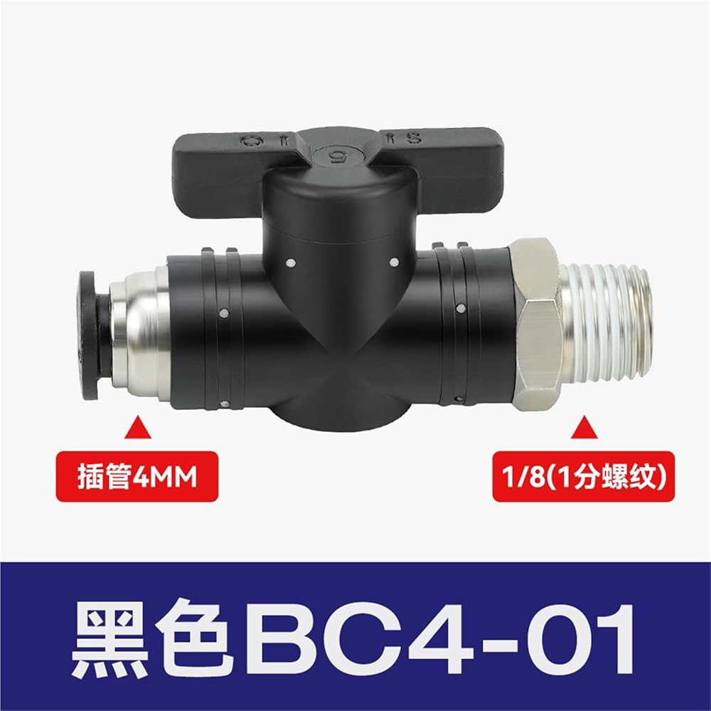 صمام يدوي بلاستيكي مشترك هوائي BUC-8/4/6/10/12 مفتاح يدوي لأنابيب الهواء BTC BC8-02 1 قطعة (أسود، BC4-01)