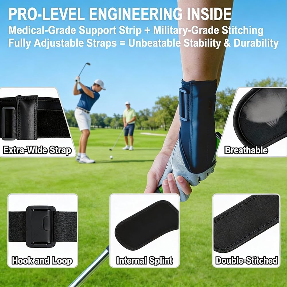 دعم وحماية من الدرجة الطبية - مصمم بمبادئ الطب الرياضي لتوفير الاستقرار على المستوى الاحترافي. يساعد على الحماية من الالتواءات والإجهاد بينما يساعد على التحكم في الانزعاج الناتج عن إجهاد المعصم والتعب الشائع - بحيث يتمكن اللاعبون الذين يعانون من الظروف الحالية من إكمال 18 حفرة بشكل مريح