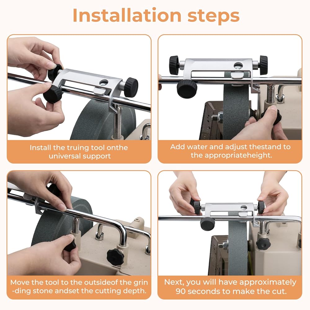 سهلة التشغيل: قم بتثبيت أداة تصحيح الماس على دعامة نظام الطحن المتوافقة وتثبيتها. بعد ذلك، كل ما عليك فعله هو ضبط المقابض السوداء الموجودة على طرفي أداة الضمادة الكاشطة لوضع الماس بالتساوي على حجر الطحن للحصول على تلميع فعال. هذه العملية توفر الوقت وتوفر العمالة، مع عملية بسيطة.