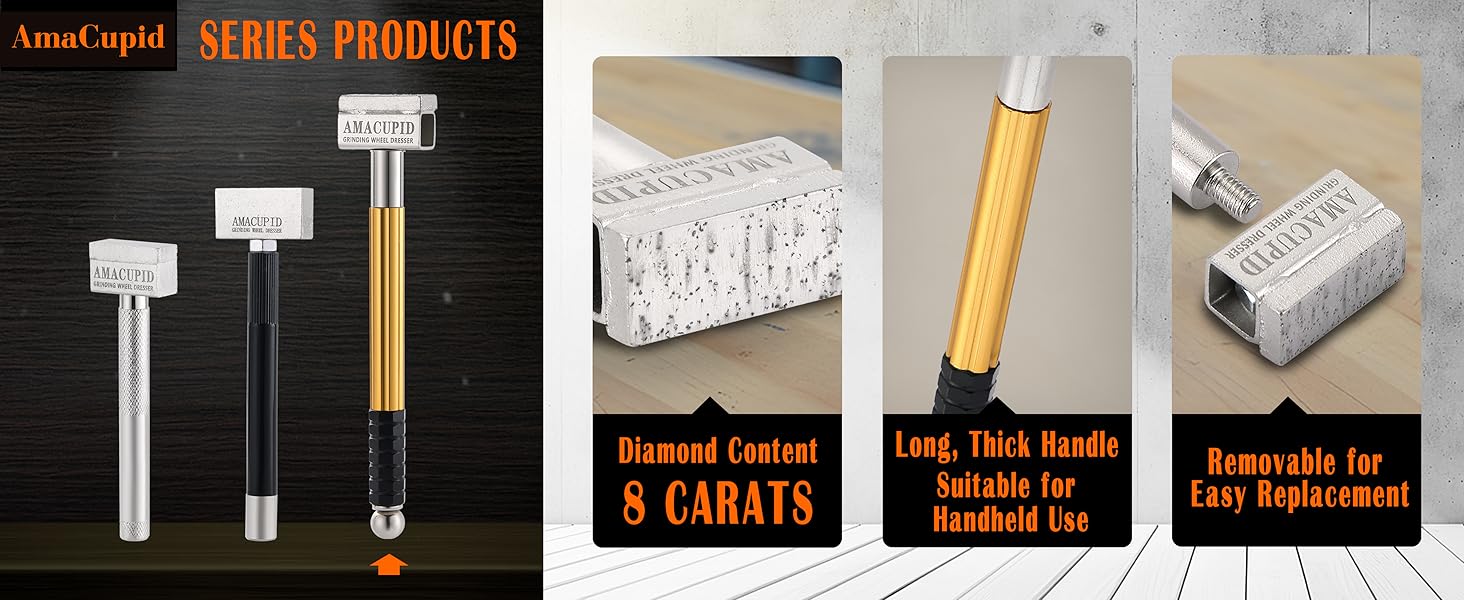 الجودة والميزات: إن منتجاتنا ذات العجلات الماسية مصنوعة من ألماس أحادي البلورة من الدرجة الصناعية ومساحيق أخرى بنسبة خاصة، مصبوبة بالقالب، مربوطة بكتلة فولاذية صلبة، ثم متكلس في درجة حرارة عالية. فهي حادة ومقاومة للاهتراء ومتينة. يصل سمك الطبقة الماسية إلى 5 مم، مما يسمح باستخدامات لا حصر لها. يمكن فصل رأس وساق الخزانة لسهولة استبدال الرأس، مما يوفر التكاليف والموارد. الساق السميكة والمطولة، مع مفصل آمن، تجعلها أكثر ملاءمة في الاستخدام.