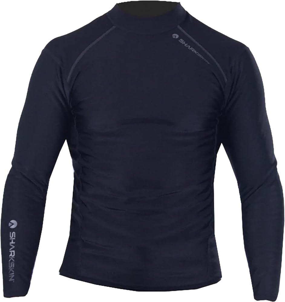 The Sharkskin Men's Chillproof Long Sleeve Top delivers high-performance thermal protection, ideal for water sports in a wide range of conditions. Crafted from Sharkskin's proprietary 3-layer Chillproof material, it provides warmth equivalent to a 2.5–3mm wetsuit—without the bulk or buoyancy. A soft neoprene rubber neck seal helps prevent wind, spray, and surface water from entering, keeping you warmer and more comfortable. This long sleeve top is perfect for scuba diving, snorkeling, paddling, or kayaking. Wear it as a standalone piece in warmer waters or as a next-to-skin thermal layer beneath a wetsuit or dry-top in colder environments. With built-in thumb tabs for easy layering, UPF50+ sun protection, and a fleece interior for all-day comfort, it's a must-have thermal garment for serious water sports enthusiasts.