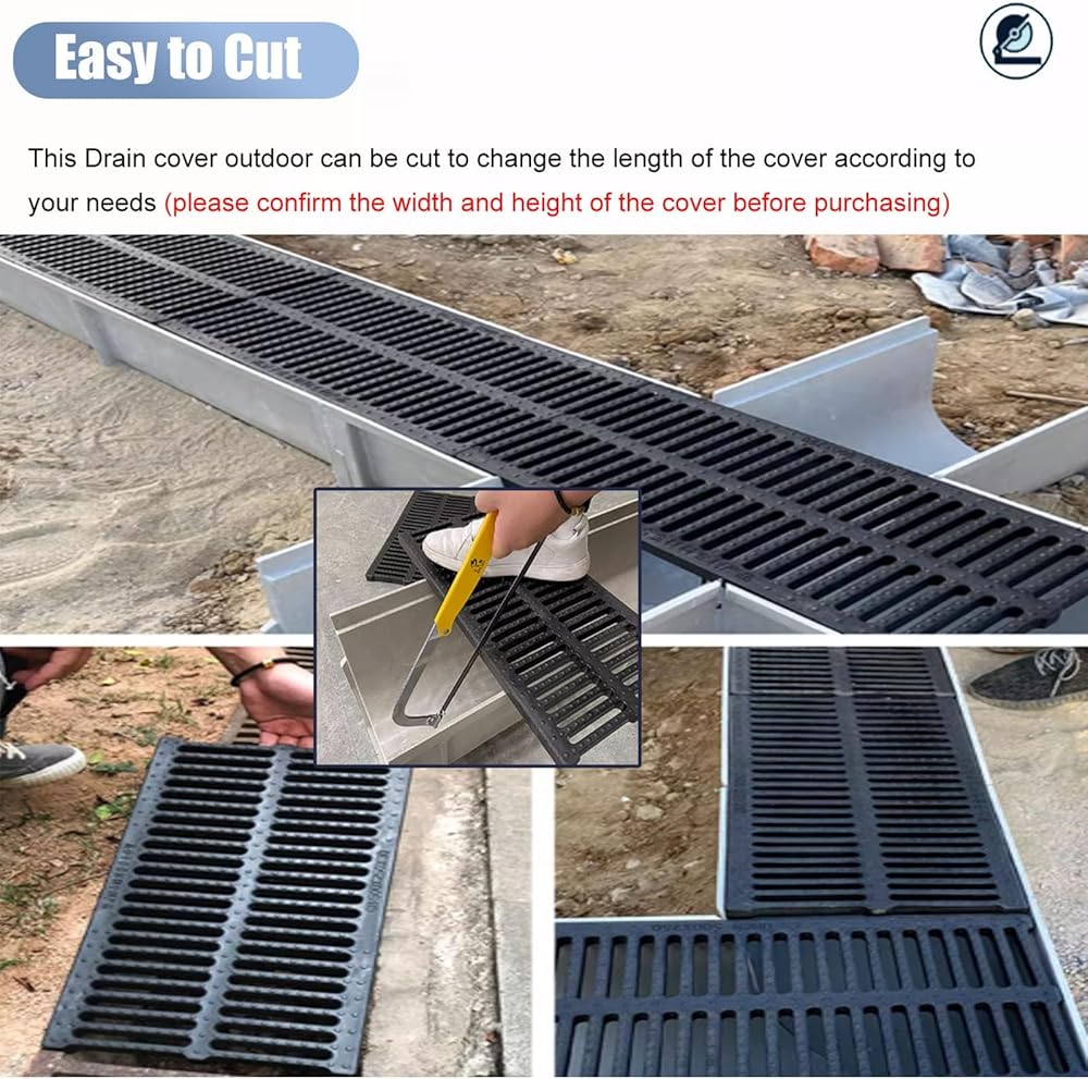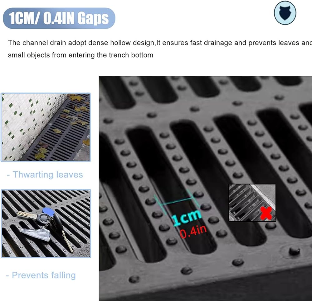 Key features include a low-profile design that blends into your surroundings, high load-bearing capacity to withstand vehicle traffic, and a detachable grate for easy maintenance. The design prevents leaves and debris from clogging the system, ensuring efficient water diversion. Our trench drains can be easily cut to fit your desired size and shape, making installation a breeze.