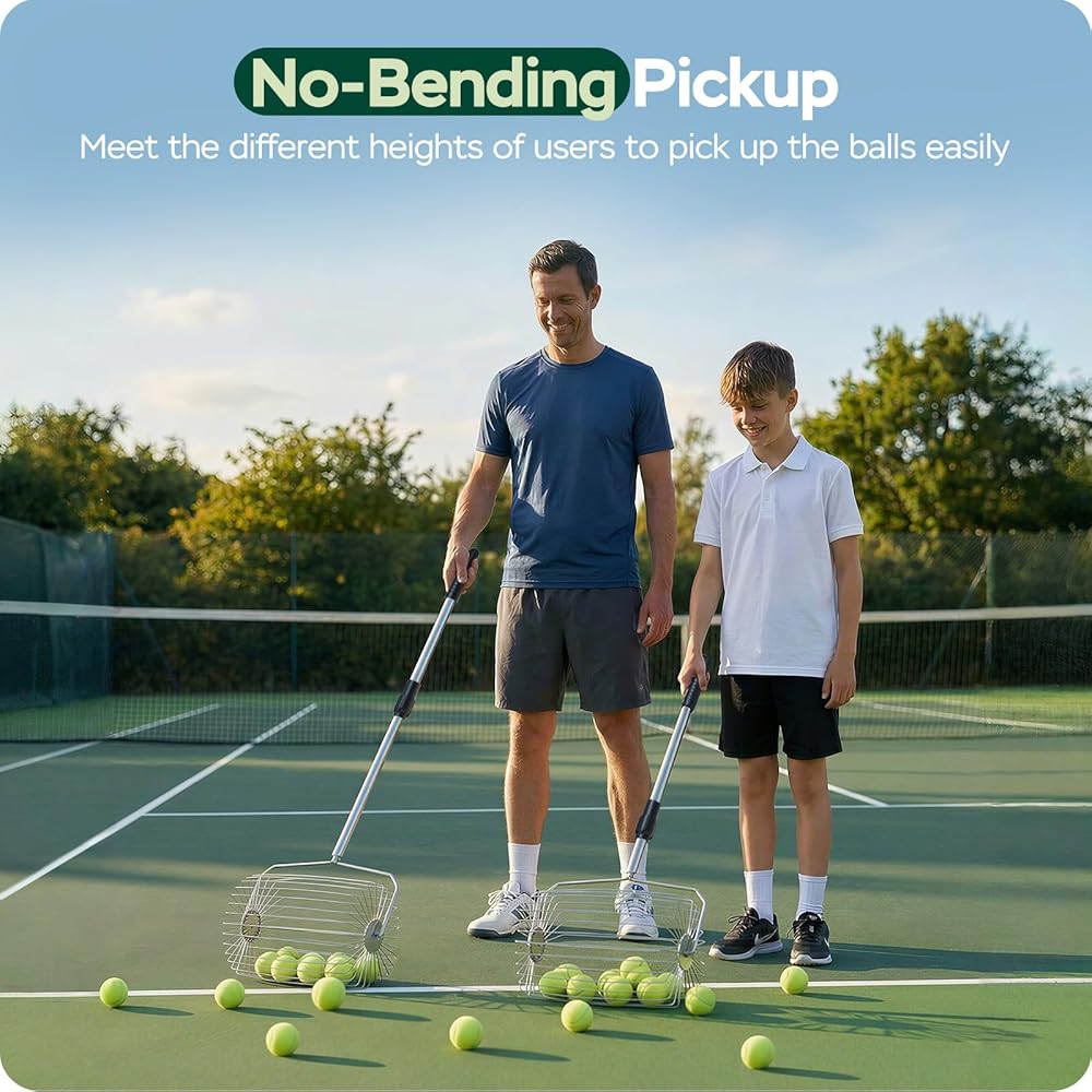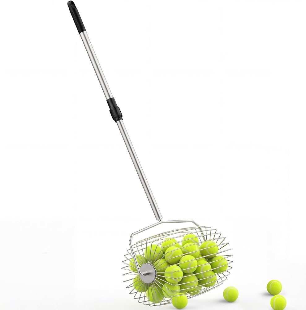 شريك تدريب جيد: يقوم جامع كرات التنس هذا بالتقاط الكرات بسرعة أثناء تدحرجها - دون الحاجة إلى الانحناء. يمكن استخدامها مع آلة كرة التنس، مما يوفر لك الوقت والجهد في استرجاع الكرات. مثالية لجلسات تدريب التنس والمدارس والنوادي الرياضية